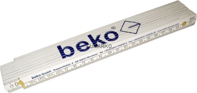 BEKO MIARA DREWNIANA SKŁADANA METR SKŁADANY 2M Profesjonalna miara drewniana ze skalą kątową na 2. elemencie, dopuszczenie Urzędu ds. Budownictwa EWG, klasa dokładności III, funkcja zatrzasku dla kąta 90°, powierzchnia hydrofobowa, pokryta ekologicznym lakierem UV. Parametry Długość: 2m Kod …