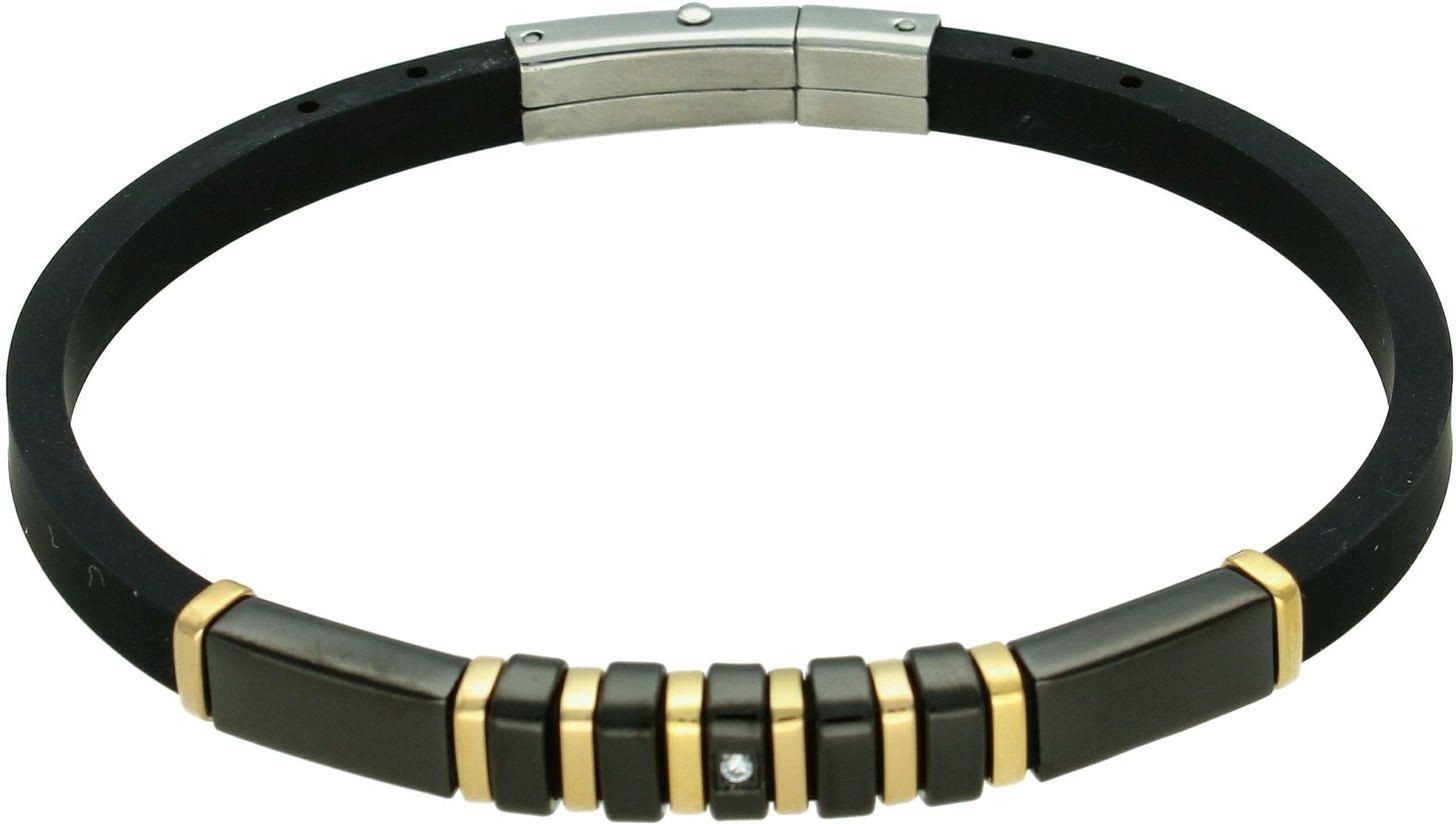 Diament Bransoletka Męska Silikonowa Z Czarnymi Blaszkami I Cyrkonią Aleksandrów Kujawski