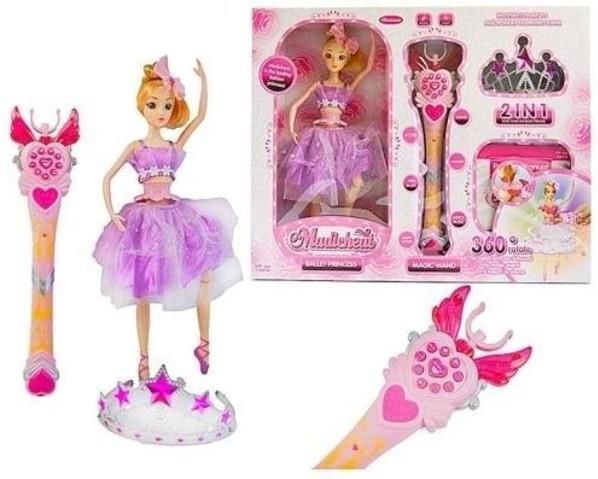 Wyjątkowa Lalka Tancerka różdżka + korona ZESTAW Laleczka jest wyjątkowa z uwagi na jej funkcjonalność. Posiada gumowe ręce, głowę ora gumowe i zginane w kolanach nogi. Różdżka dołączona do lalki ma wyjątkową moc- gra, świeci oraz wprowadza lakę w taniec- obraca ją o 360 stopni. Zestaw zawiera również koronę, aby nasza pociecha poczuła się jak prawdziwa księżniczka. Zestaw dostępny w trzech kolorach: - FIOLETOWY, - NIEBIESKI, - RÓŻOWY. Zestaw zawiera: - LALKĘ ( wysokość około 31 cm), - RÓŻDŻKĘ (wysokość około 28 cm), - KORONĘ ( wysokość 7 cm, szerokość 12,5 cm). Różdżka zasilana bateriami: 3 x 1.5 V "AA". Posiada przycisk play/pause. Dźwięki w języku angelskim. Wyjątkowa Lalka Tancerka różdżka + korona ZESTAW wprowadza i rozwija pasję muzyczną u dzieci, rozwija poczucia rytmu, ćwiczy talent artystyczny oraz wyobraźnię, rozwijania sprawność manualną naszych pociech, ćwiczy zmysł słuchu oraz poprawia koordynację wzrokowo-ruchową, uczy angielskich nazw zwierzątek oraz ich odgłosy. Zestaw zapakowany jest w piękne, kolorowe pudełko z rączką. Idealnie nadaje się na PREZENT. Zabawka posiada różne kolory. Jeśli kolor nie zostanie wybrany, zabawka zostanie wysyłana w dowolnym kolorze.