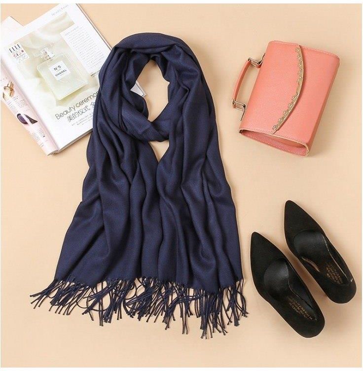 Elegancki szal / chusta Elegancki szal z frędzlami Wymiary: 70 cm x 200 cm waga 250 g Materiał : 80 % wiskoza 20 % poliester Idealny do jesiennych kurtek oraz zimowych płaszczy.