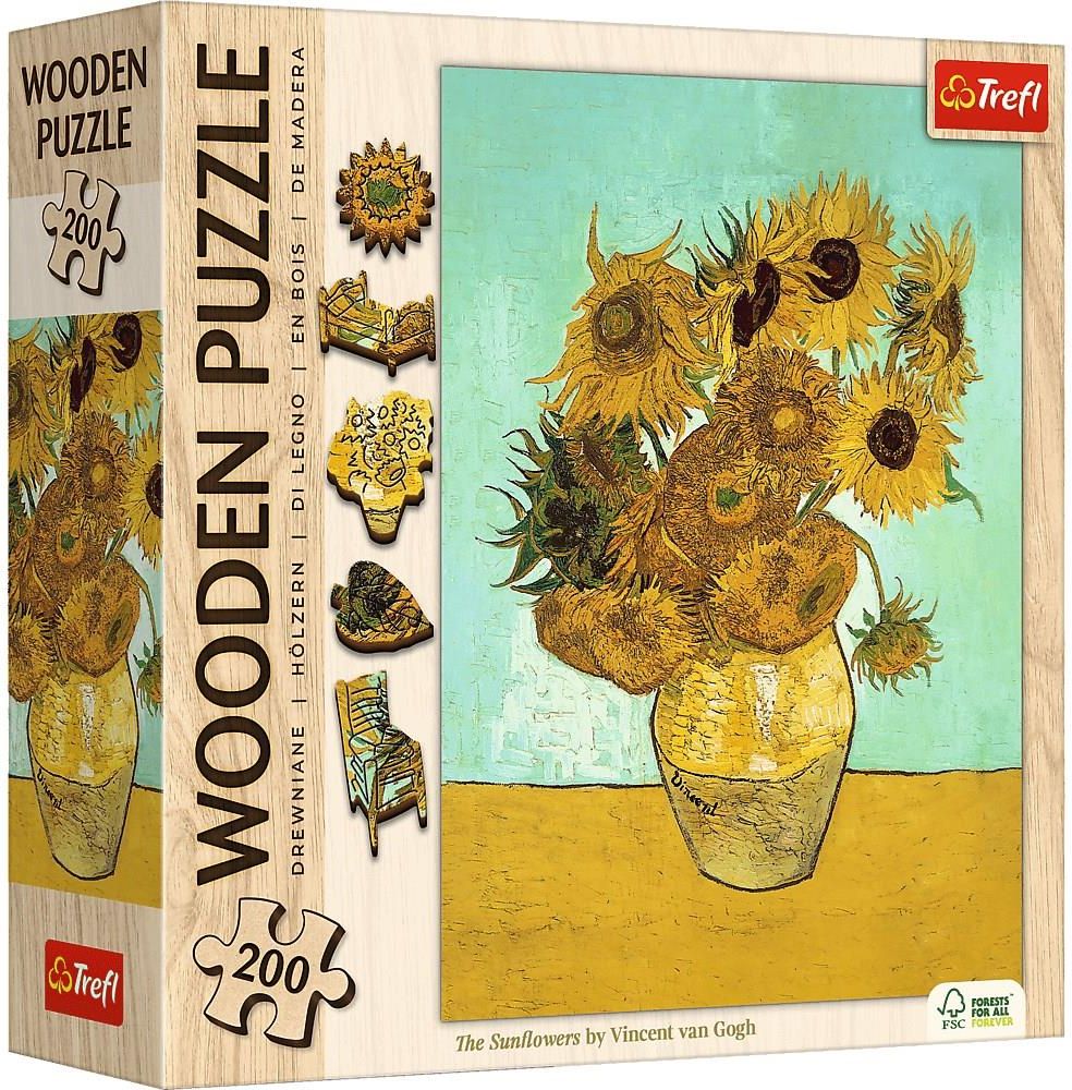 Puzzle drewniane 200 el. Słoneczniki, Vincent van Gogh WOODEN PUZZLE 200 elementów przedstawiające znany na całym świecie obraz Słoneczniki - Vincent van Gogh. Trefl Wooden Puzzle. Sztuka na wyciągnięcie ręki! Wooden Puzzle to seria drewnianych układanek, które przeniosą Cię do niezwykłego świata …