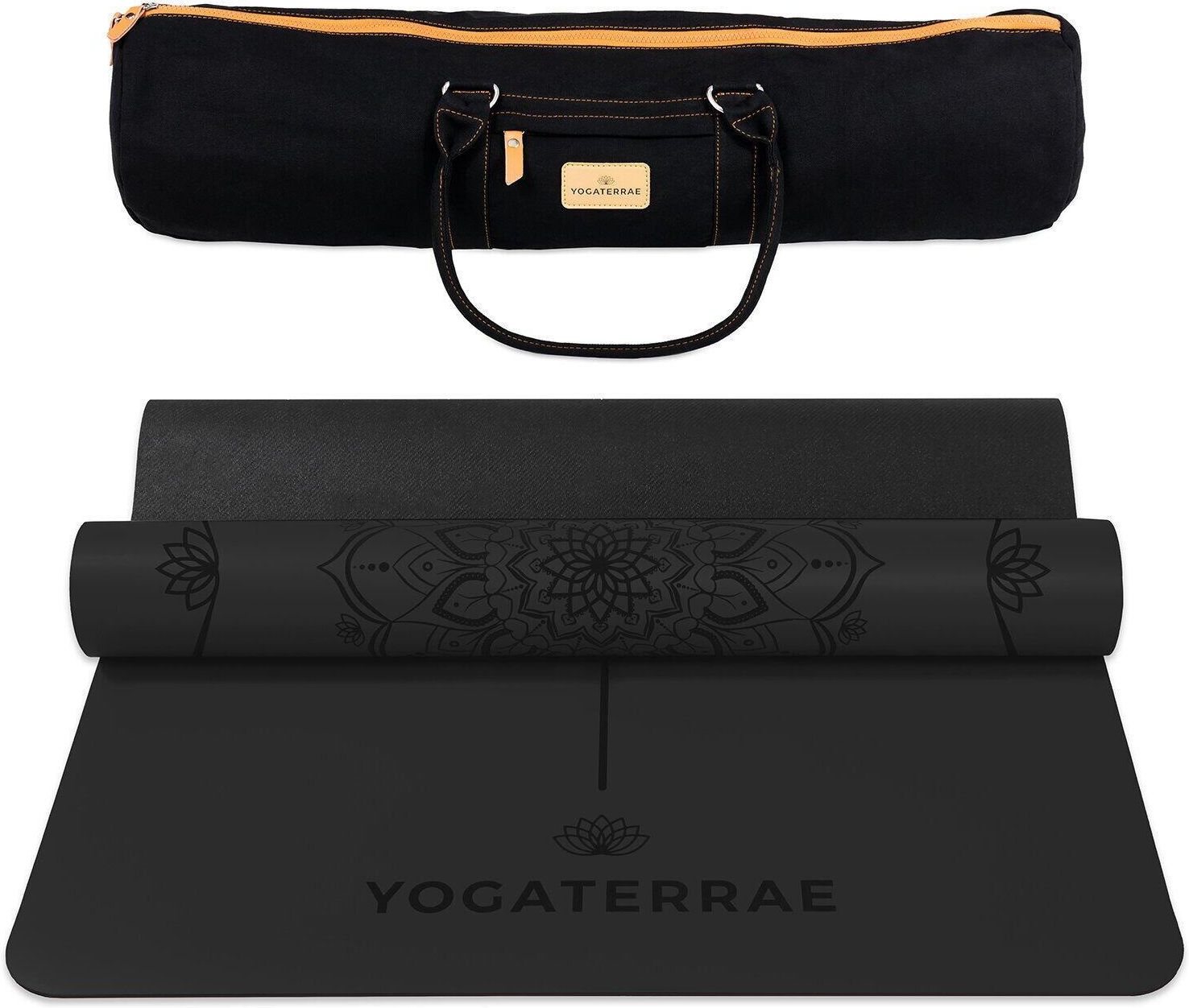 Yogaterrae Czarna Mata Do Jogi Z Pu I Naturalnej Gumy, Mandala Linie Ciała + Torba 183Cm Aleksandrów Kujawski