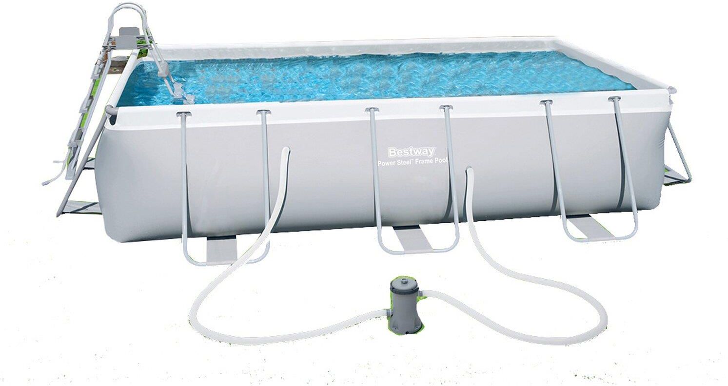 Basen stelażowy 404x201x100cm z pompą Bestway 56441 BASEN STELAŻOWY 10w1 404cm x 201cm x 100cm BESTWAY 56441 Baseny stelażowe firmy Bestway mogą idealnie wypełnić wolną przestrzeń Twojego ogródka. Możesz zdecydować, gdzie go ustawić, by czerpać z niego maksymalną satysfakcję. Wielkość tego basenu stelażowego ma również tę zaletę, iż pomieści wiele osób, które wspólnie mogą korzystać z tego letniego szaleństwa. Przejrzysta instrukcja obsługi sprawia, iż rozłożenie basenu zajmuje chwilę. Basen na stelażu renomowanej firmy Bestway 56441 PARAMETRY TECHNICZNE BASENU: wymiary: 404 x 201 cm głębokość: 100 cm wydajność pompy 2006/h zasilanie pompy: 220-240 V filtr: typ II (BESTWAY 58094) wypełnienie wodą: 90% pojemność: 6478 litrów waga: 65kg Cechy basenu: Wytrzymały stelaż odporny na korozje (cynkowana rama stalowa) Łatwy montaż i demontaż Zawór opróżniania sterujący przepływem Możliwość przyłączenia węza ogrodowego Łatka naprawcza Instrukcja obsługi w języku polskim Basen naziemny Bestway® Power Steel ™ jest łatwy w montażu i stworzony z myślą o trwałości. Trwała, odporna na korozję stalowa rama jest wyposażona w system Seal & Lock ™, który zapewnia solidne i bezpieczne połączenie elementów ramy. Wyściółka Tritech ™ wykonana jest z trwałego materiału, który jest wzmocniony w celu zapewnienia wytrzymałości i odporności na przebicie. SUPER-TOUGH ™ - potrójnie laminowane boczne ściany są wzmocnione dookoła taśmą, aby solidnie utrzymać nogi stelażu na miejscu . Łatwy w montażu i zaprojektowany do długoletniej rodzinnej zabawy! Zestaw zawiera: basen stelażowy o wymiarach 404 x 201 x100 cm pompa filtrująca Bestway o wydajności 2006 l/h filtr do pompy Bestway typ II (58094) drabinka Bestway (metalowy stelaż) zaciski do pompy sitka do pompy węże do pompy zaślepki otworów na pompę łatka naprawcza instrukcja