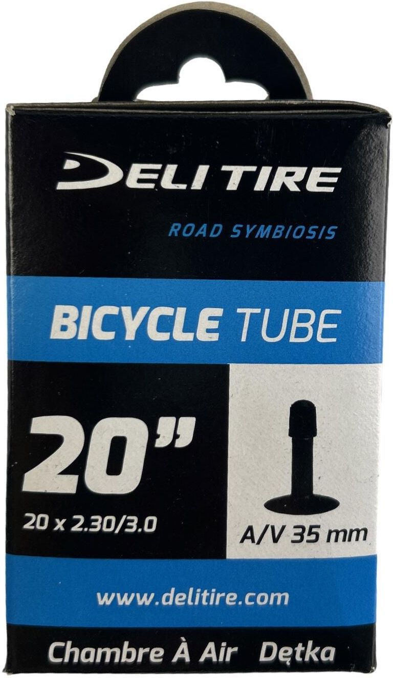 DĘTKA DELI TIRE 20x2.30-3.00 AV 35 MM Dętka rowerowa DELI TIRE wykonana została ze specjalnej mieszanki butylowej która zapewnia większą odporność dętki na przetarcia oraz gwarantuje utrzymanie stałego ciśnienia w oponie. Dętka przeznaczona do rowerów elektrycznych oraz fatbike z szerokimi oponami …