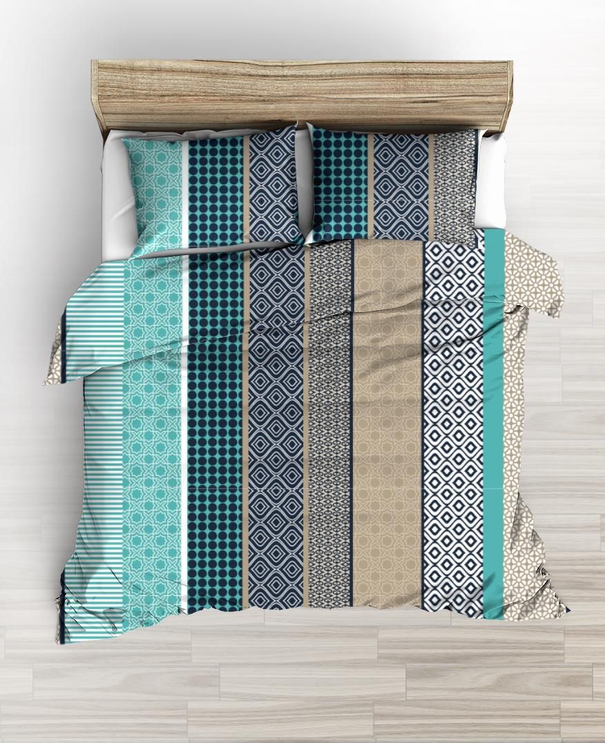 Fan Pościel Z Kory 160X200 Turkusowa Beżowe Szara Pionowe Pasy Romby Geometria 40853 Aleksandrów Łódzki