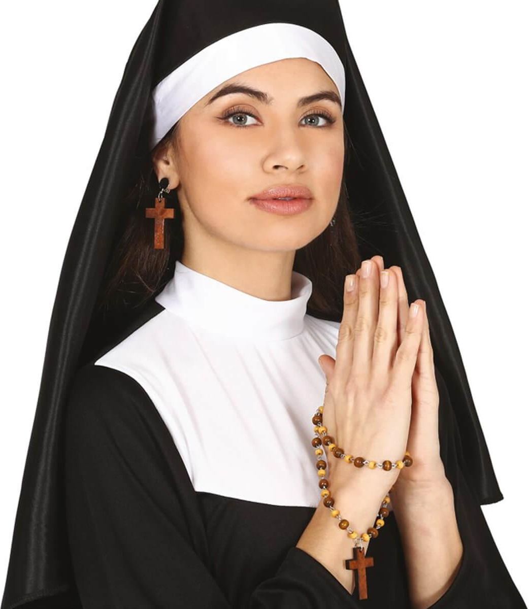 Zestaw Zakonnicy Różaniec Kolczyki Planujesz zabłysnąć na imprezie w stroju Zakonnicy mamy dla ciebie doskonały dodatek w postaci różańca i klipsów w kształcie krzyża. Wymiary - różaniec długość: 30 cm plus 4,5 cm krzyżyk - klipsy krzyże 4,5 cm