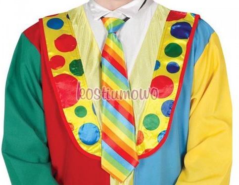 KRAWAT KLAUNA Duży, kolorowy krawat idealny do stroju klauna. Jeśli zamierzasz wypaść profesjonalnie to nie możesz go nie mieć! Krawat w kolorowe paski, mocowany na szyi za pomocą elastycznej gumki. Fantastyczny gadżet na bal karnawałowy lub przebieraną imprezę. Świetnie wykonany i wykończony. …