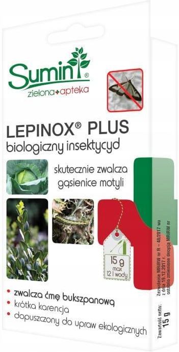 LEPINOX PLUS 15G SUMIN INSEKTYCYD DO BIOLOGICZNEGO ZWALCZANIA ĆMY BUKSZPANOWEJ I INNYCH GĄSIENIC MOTYLI W UPRAWACH BUKSZPANU, WARZYW I ROŚLIN SADOWNICZYCH Środek owadobójczy firmy Sumin o działaniu selektywnym zwalczający gąsienice motyli, w tym ćmę bukszpanową. Preparat biologiczny w postaci …