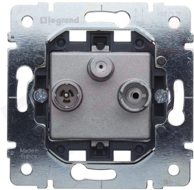 SISTENA™ LIFE Gniazdo TV-RD-SAT (końcowe) Dane techniczne: Częstotliwość fmax=2400MHz Tłumienie: 10dB Właściwości: Należy stosować w instalacjach wielogniazdowych łańcuchowych - maksymalnie 3 gniazda przelotowe + 1 końcowe w łańcuchu. Zastosowanie: Nieograniczone (instalacje hotelowe, telewizja kablowa). Mechanizm wyposażony w metalowy uchwyt. Możliwy montaż w puszce przy użyciu pazurków lub wkrętów. Uwaga! Powyższy produkt jest jedynie mechanizmem. Aby skompletować produkt należy do niego dokupić plakietkę oraz ramkę. Nr katalogowy: 775790