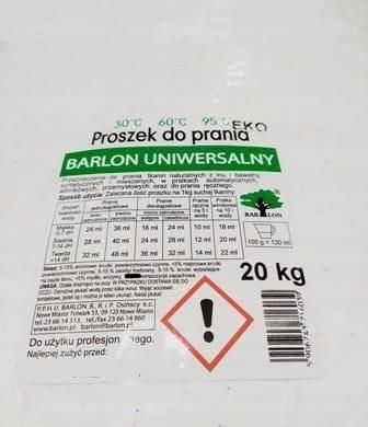 Opinie Proszek do prania Barlon Uniwersalny Eko 20KG Aleksandrów Łódzki