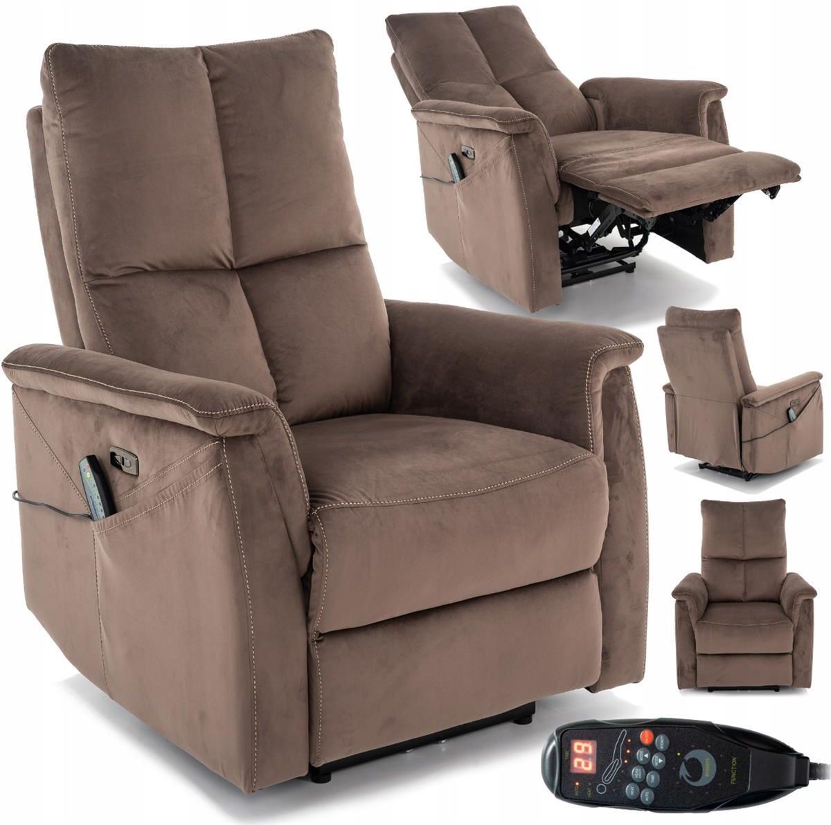 Fotel rozkładany z masażem relaksacyjny NEPTUN M VELVET cappuccino Elektryczny fotel rozkładany aksamitny z funkcją masażu Fotel Neptun Velvet od Signal meble to idealny mebel do salonu, pokoju dziennego a nawet sypialni. Za pomocą bocznego przycisku można wysunąć podnóżek i obniżyć oparcie do …