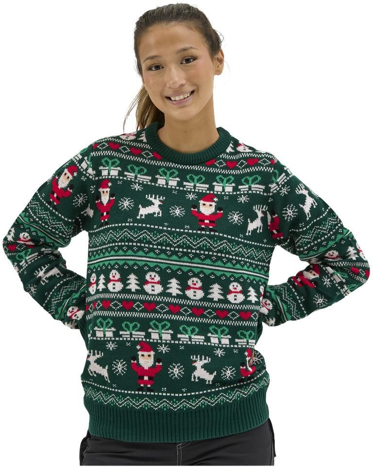 Dzianinowy sweter świąteczny wykonany w 100% z akrylu, który jest ciepły i miękki. Ozdobiony zabawnym motywem.