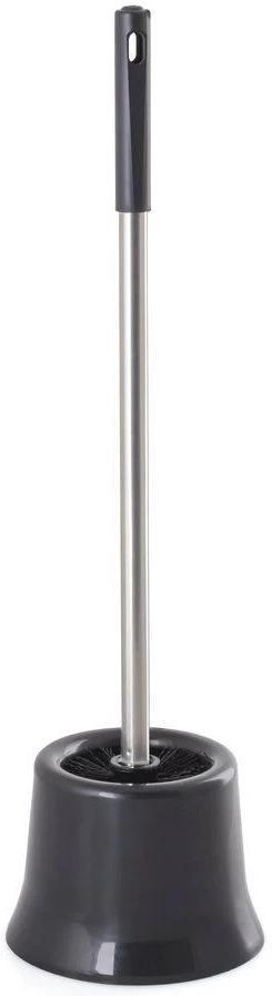 Szczotka toaletowa z pojemnikiem wykonanym z tworzywa sztucznego w kolorze czarnym stanowi praktyczne i estetyczne rozwiązanie do utrzymania czystości w łazience. Lekki i gładki pojemnik jest łatwy w czyszczeniu, co zapewnia wygodę użytkowania. Główka czyszcząca szczotki została wykonana z gęstego, plastikowego włosia w kolorze czarnym, dzięki czemu skutecznie usuwa brudy i osady z powierzchni. Średnica główki szczotki wynosi około 75 mm, co zapewnia odpowiednią efektywność działania.