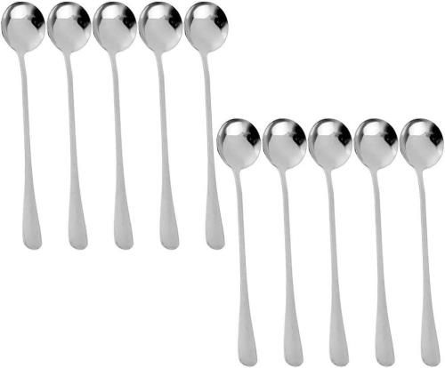 Zestaw 10 stalowych łyżek do mieszania. Długość łyżki: 190 mm, szerokość: 33 mm. Idealne do mieszania mrożonej herbaty, kawy i koktajli.Wykonany z najwyższej jakości stali nierdzewnej, która jest bezpieczna dla zdrowia. Odporny na rdzę, solidny i trwały przez wiele lat.Sztućce mają ponadczasowy, elegancki design i są wyposażone w ergonomicznie ukształtowane uchwyty, które są wygodne i bezpieczne w dłoni. Idealne do codziennego użytkowania. Sztućce są szczególnie wytrzymałe ze względu na wysoką grubość materiału i pasują do każdego stołu i każdej kombinacji dekoracji i porcelany.Można używać ich jako łyżeczek do deserów, zup, lodów, deserów lodowych, mrożonej herbaty, kawy i koktajli. Nadają się do użytku w domu, barze, na przyjęciu, w sklepie z deserami i restauracji.Stan: Nowy