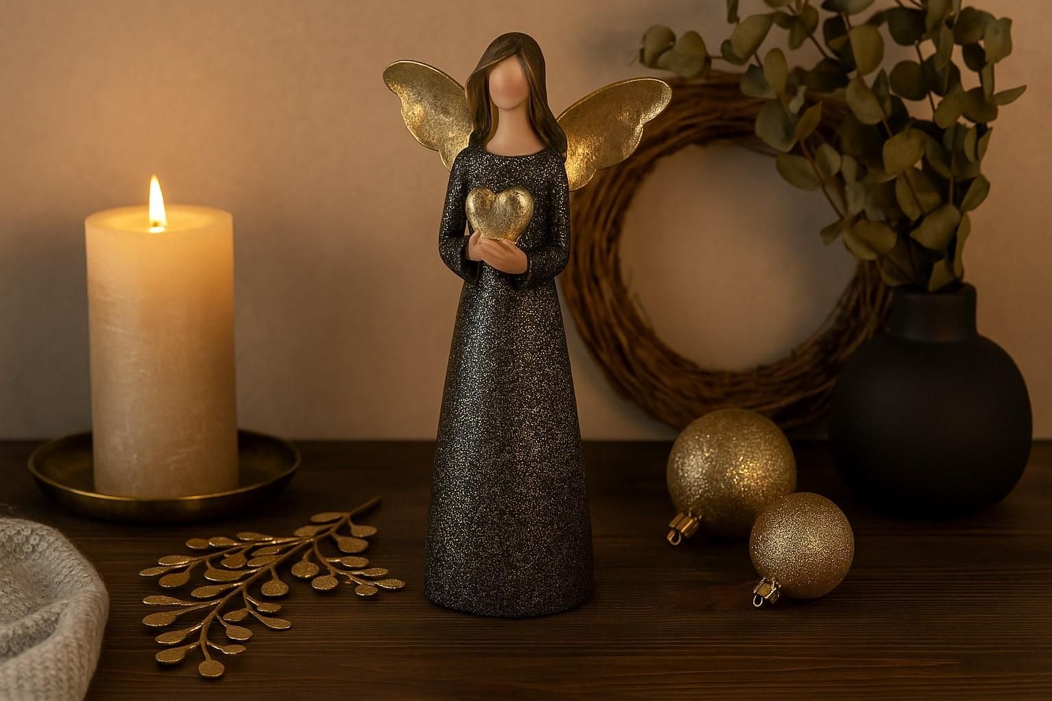 Anioł Czarny Złoty z Serduszkiem 24 CM EWAX 5903988683546 Alwernia