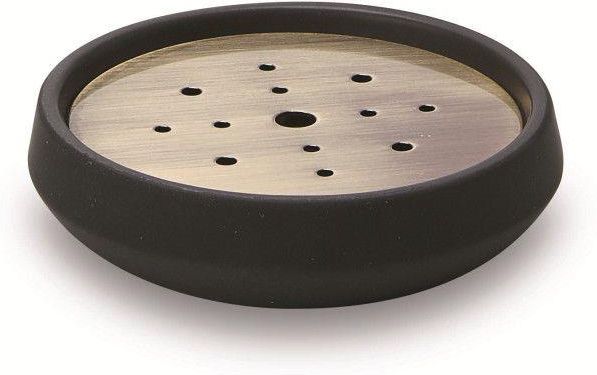 NOWOŚĆ MARKI AQUANOVA Mydelniczka Opaco belgijskiej marki Aquanova. Kolekcja Opaco stworzy nostalgiczną aurę w nowoczesnej odsłonie, wprowadzając do łazienki ciepłe i ozdobne elementy. Produkt został wykonany z ceramiki z gumowym wykończeniem oraz ze stali szlachetnej. Cechą charakterystyczną kolekcji Opaco jest połączenie elementów ceramiki matowej i w połysku oraz modnego mosiądzu. Kolor ceramiki: czarny | black Kolor stali: mosiądz | brass Materiał: ceramika z gumowym wykończeniem, stal szlachetna Rozmiar: Ø 12 x h 3 cm