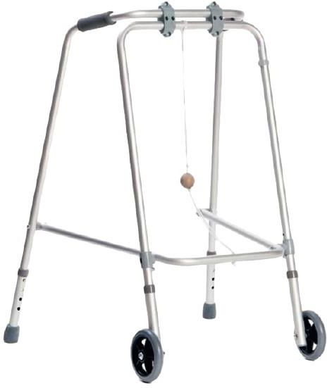 Balkonik jest sprzętem pomocniczo-rehabilitacyjnym przeznaczonym dla osób niepełnosprawnych ze schorzeniem narządu ruchu, z problemami pionizacji lub mających problem z utrzymaniem równowagi w czasie chodzenia. Wykorzystywany jest również dla utrzymania równowagi w czasie nauki chodzenia po przebytej chorobie lub urazie. Cechy produktu składana, aluminiowa rama, stabilna, wytrzymała konstrukcja, kulka ułatwiająca składanie, kółka przednie o średnicy 12 cm, tylne nóżki zakończone gumowymi zabezpieczeniami antypoślizgowymi, ergonomiczne uchwyty, wysokość regulowana skokowo co 2,5 cm. Zastosowanie Sprzęt pomocniczo-rehabilitacyjny, wspomagający pionizację i poruszanie się. Wymiary Szerokość: 65,5 cm Wysokość: 79,5 – 87 cm Waga: 2 kg Maksymalne obciążenie: 110 kg
