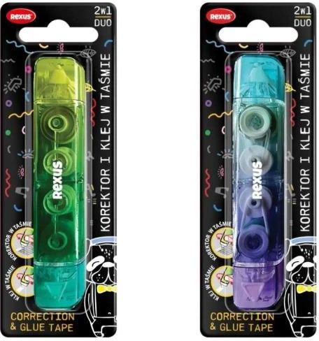 Uniwersalny produkt 2w1- korektor i klej w formie taśmy, zapewniający łatwe iwygodne korzystanie,idealny do przechowywania w piórniku. Z jednej strony narzędzia znajduje się korektor a, z drugiej klej.