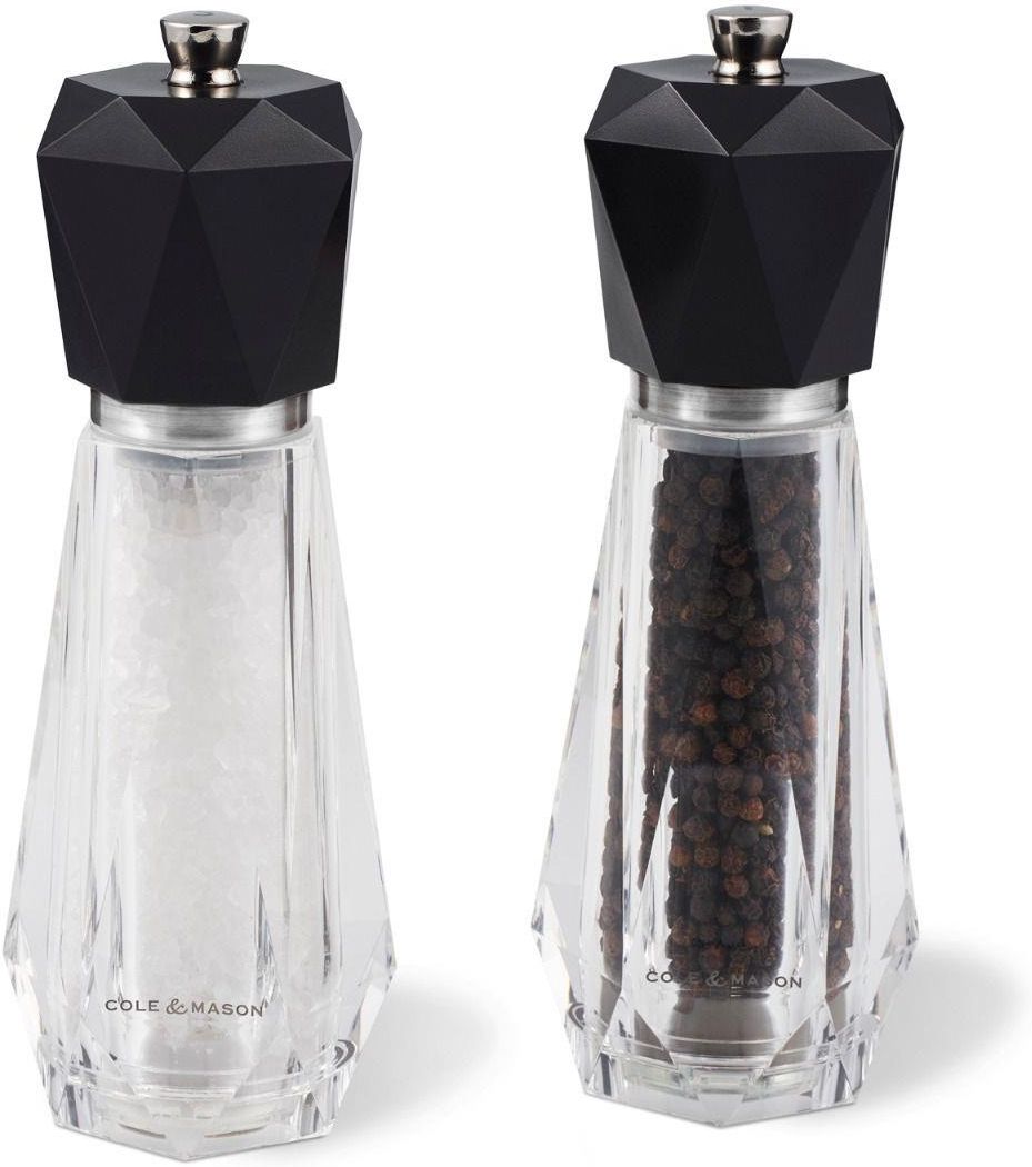 Zestaw akrylowych młynków do soli i pieprzu, model Somerton angielskiej marki Cole & Mason, znanej na rynkach międzynarodowych, jako producenta wysokiej jakości młynków do przypraw. Piękny kształt młynków inspirowany jest szlifowanymi diamentami. Prezentowane młynki wykonane są z akrylu. Akryl …