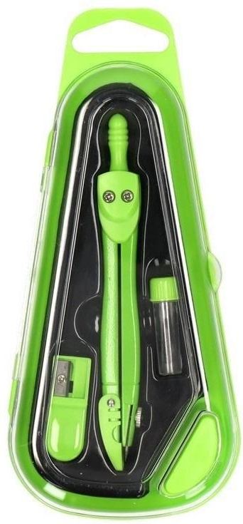 szkolny cyrkiel metalowy z kolorowym wykończeniem pakowane w estetyczne, plastikowe etui płynnie regulowany rozstaw ramion w zestawie wymienne wkłady grafitowe i temperówka mix kolorów