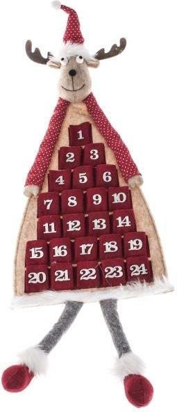 Wyjątkowy kalendarz adwentowy. Posiada kieszonki w których można umieścić np. słodycze. Doskonały na prezent dla Twojej pociechy. Renifer posiada wstążkę za którą można go powiesić. Wzór: renifer Produkt 1 x kalendarz adwentowy Wymiary wysokość 110 cm wielkość kieszonek 5,5 x 6 cm Materiał tkanina