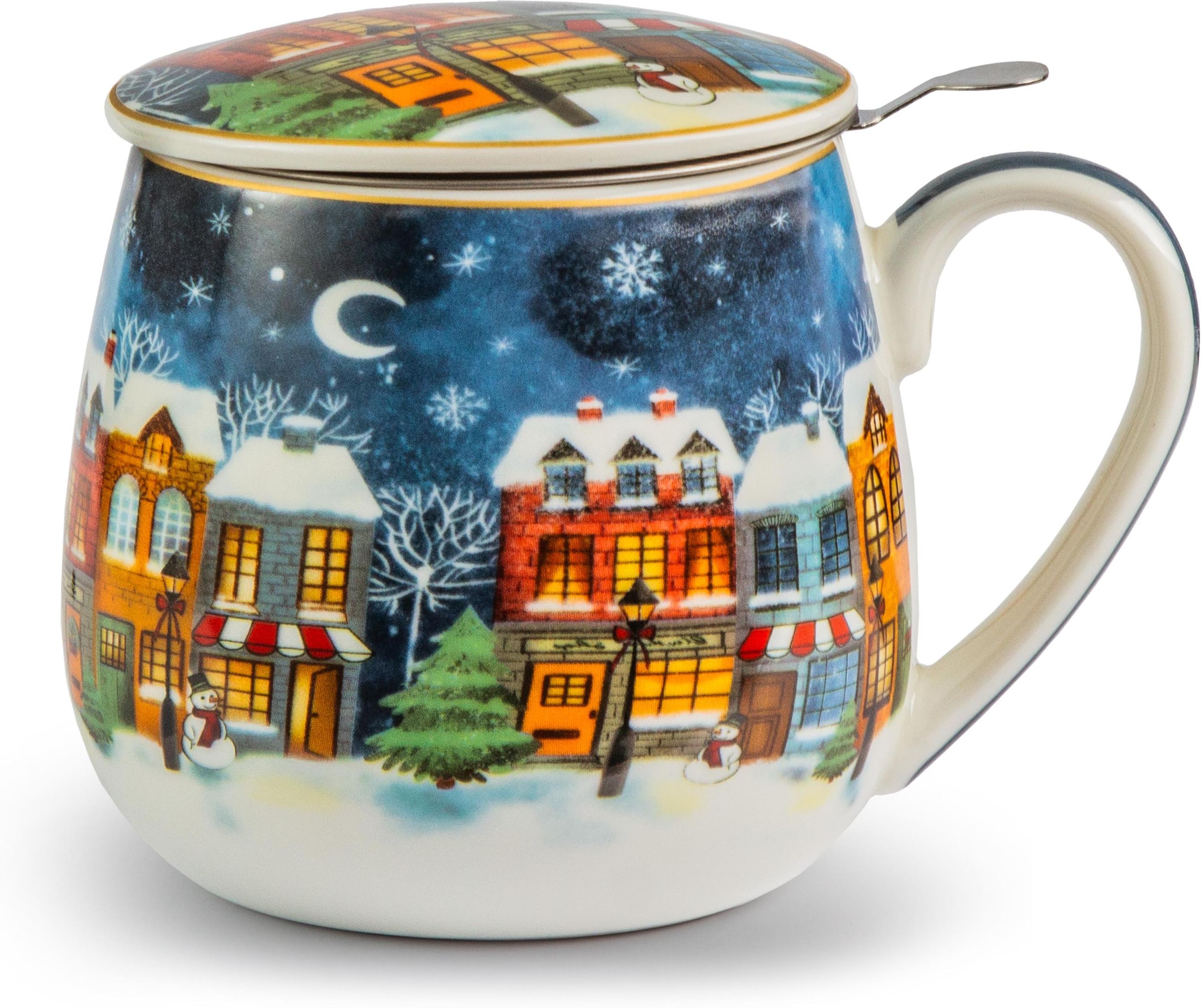 Duo Kubek Porcelanowy Z Zaparzaczem I Pokrywką Christmas City 430 Ml 165201 Alwernia