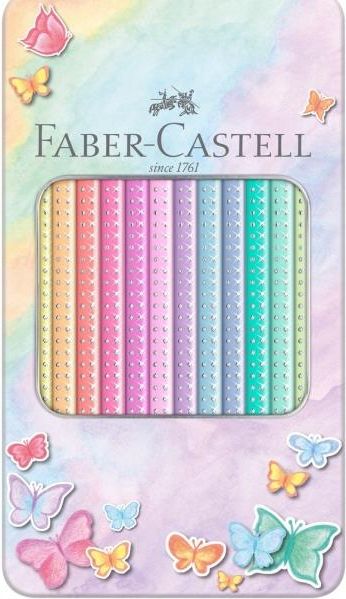 Kredki ołówkowe Faber Castell Sparkle 12 sztuk Kredki Sparkle Pastel Faber-Castell to zestaw 12 kredek o modnych, pastelowych kolorach, zamkniętych w pięknym metalowym opakowaniu z motywem motyli. Ich unikalny design z błyszczącymi kropkami dodaje blasku i uroku biurkowej codzienności. Kredki mają …