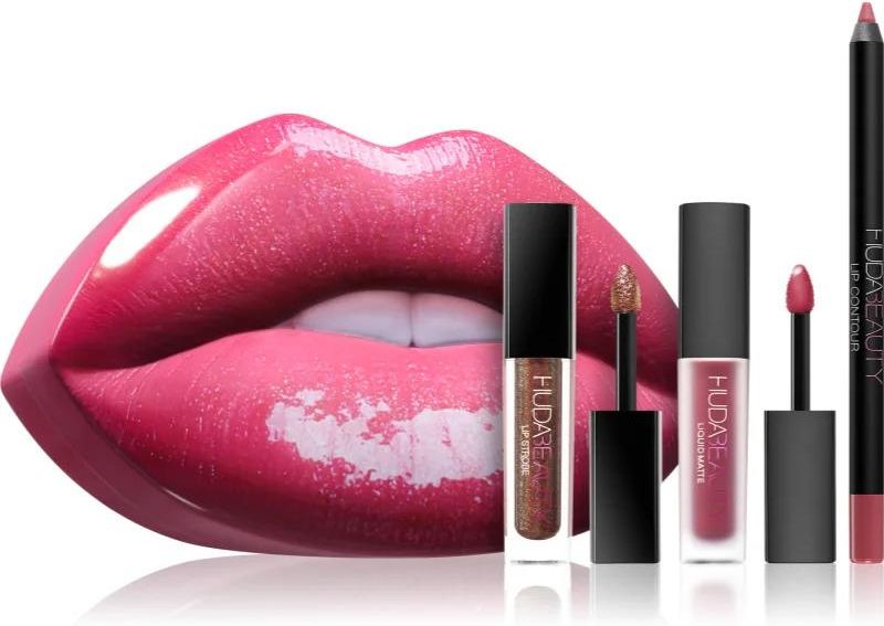 Huda Beauty Contour & Strobe Lip Set, 3 szt., Zestawy kosmetyków dla kobiet, Zawartość zestawu: Huda Beauty Liquid Matte pomadka w płynie o matowym wykończeniu 2 ml Huda Beauty Lip Strobe Lipstick 2 ml Huda Beauty Lip Contour konturówka do ust 1,2 g Właściwości: doskonale obrysuje i podkreśli usta …