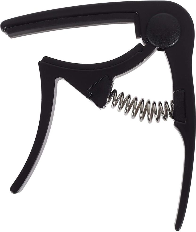 Guitto GGC-06 BK kapodaster gitarowy CZARNY do gitary akustycznej i elektrycznej Ten kapodaster pasuje do gitary akustycznej i elektrycznej lub ukulele. Wykonany jest ze stopu aluminium, dzięki czemu jest nie tylko bardzo wytrzymały, ale także lekki. Sprężyna wykonana jest z wytrzymałej stali. Ergonomiczna konstrukcja umożliwia szybką i wygodną obsługę jedną ręką. Cechy Wykonany ze stopu aluminium Poddany polerowaniu i galwanizacji Wysokiej jakości elastyczna sprężyna dla komfortowego i stabilnego użytkowania Gumowane krawędzie chronią instrument i zapewniają czyste brzmienie Odpowiedni do gitary akustycznej i elektrycznej Kolor: Czarny Waga: 57g ID: 126