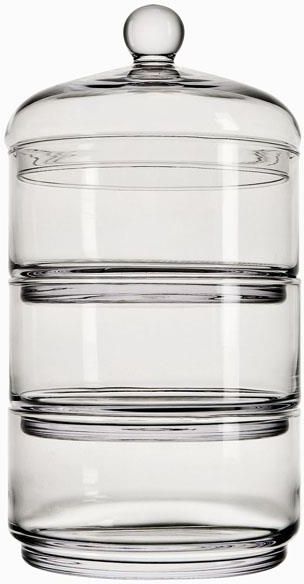 Zestaw pojemników z pokrywą Glamour Krosno Zestaw trzech szklanych pojemników z pokrywą do przechowywania ciastek ,babeczek i innych słodkości. Prezentuje się bardzo atrakcyjnie i pozwala w urozmaicony sposób serwować wypieki, słodkości. Pojemniki poukładane w piramidę tworzą całość z pokrywą, ale …
