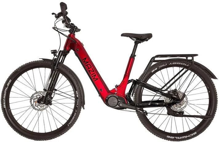 MAZIM SELLA VERDANT Mazim Sella Verdant to elektryczny rower typu SUV, który łączy w sobie nowoczesną technologię, komfort i styl. Dzięki wszechstronnej konstrukcji doskonale sprawdza się zarówno podczas codziennych dojazdów po mieście, jak i na dłuższych, terenowych wyprawach. Unikalna kolorystyka podkreśla jego wyjątkowy charakter. Sercem roweru jest centralnie montowany silnik Bafang M410 o mocy 250 W i momencie obrotowym 80 Nm, który zapewnia płynne przyspieszenie i dynamiczną jazdę. W połączeniu z akumulatorem Greenway 17,5 Ah oferuje zasięg nawet do 150 km. Pełne zawieszenie Rock Shox (przód 130 mm, tył 165 mm) oraz hydrauliczne hamulce Magura MT Sport gwarantują pełną kontrolę i bezpieczeństwo na każdej trasie. Komfort użytkowania podnoszą błotniki, pełne oświetlenie zintegrowane z bagażnikiem, a także regulowany mostek i ergonomiczne chwyty. Rower seryjnie wyposażony jest w minimalistyczny wyświetlacz Bafang DP C080, a dla bardziej wymagających dostępny jest nowoczesny, kolorowy ekran TFT Bafang DP C010 z funkcją nawigacji i rozbudowanymi statystykami. Mazim Sella to świetny wybór dla rekreacyjnych rowerzystów, miłośników dłuższych wypraw oraz osób dojeżdżających do pracy. Dzięki przemyślanej konstrukcji i niezawodnym komponentom, rower ten gwarantuje swobodę jazdy oraz najwyższy poziom wygody i bezpieczeństwa. Kluczowe cechy Silnik Bafang M410 (250 W, 80 Nm) – moc i dynamika w każdych warunkach Akumulator Greenway 17,5 Ah – zasięg do 150 km Pełne zawieszenie Rock Shox – przód: 35 Silver Solo Air 130 mm, tył: Monarch R 165 mm Hydrauliczne hamulce Magura MT Sport z tarczami 180 mm Opony Schwalbe Hurricane 29×2,25 – przyczepność i komfort na każdej nawierzchni Minimalistyczny wyświetlacz Bafang DP C080 lub opcjonalny DP C010 TFT z nawigacją Pełne błotniki, oświetlenie LED i praktyczny bagażnik Regulowany mostek Ergotec Octopus 2 i ergonomiczne uchwyty Rower seryjnie wyposażony jest w wyświetlacz Bafang DP C080.CB – kompaktowy, minimalistyczny ekran LED, który dostarcza najważniejszych informacji podczas jazdy. Na czytelnym panelu wyświetlane są: poziom naładowania baterii, aktualny tryb wspomagania (Eco, Normal, High), prędkość jazdy, podstawowe komunikaty serwisowe. Wyświetlacz ten wyróżnia się bardzo prostą obsługą – wystarczy jedno spojrzenie, aby odczytać kluczowe informacje. Dzięki niewielkim rozmiarom zachowuje estetykę kokpitu i zmniejsza ryzyko uszkodzenia w terenie. Idealny wybór dla osób, które cenią funkcjonalność i minimalizm. Dla bardziej wymagających użytkowników oferujemy możliwość doposażenia roweru w wyświetlacz Bafang DP C010.CN – nowoczesny, kolorowy ekran TFT o przekątnej 3,5 cala, który zapewnia znacznie szerszy zakres danych i funkcji. Oprócz podstawowych parametrów, wyświetlacz oferuje: funkcję nawigacji precyzyjny odczyt prędkości i dystansu, informację o pozostałym zasięgu na baterii, aktualny pobór mocy i wskaźnik efektywności, pełną historię podróży i statystyki, możliwość ustawienia poziomów wspomagania według własnych preferencji, przejrzysty interfejs z możliwością dostosowania motywu kolorystycznego. Dzięki jasnemu ekranowi TFT wszystkie informacje są doskonale widoczne nawet w pełnym słońcu. Intuicyjne menu ułatwia nawigację, a dodatkowe funkcje czynią go idealnym rozwiązaniem dla osób, które lubią mieć pełną kontrolę nad swoją jazdą i sprzętem. Bez względu na to, który wyświetlacz wybierzesz, MAZIM Sella Verdant zapewni Ci wygodę obsługi, bezpieczeństwo oraz dostęp do kluczowych danych, które uczynią każdą wyprawę jeszcze lepszą. Dane techniczne Rama i koła Black Jack Ready 30 29”/27,5”, alu 6061 Silnik Bafang M410, 250 W, 80 Nm (opcjonalnie M510 – 95 Nm) Wyświetlacz Bafang DP C080 (standard) / DP C010 (opcja) Bateria Greenway ZZ610 36V / 17,5 Ah / 630 Wh Amortyzacja RockShox 35 Silver TK Solo Air 130 mm / Monarch R 165 mm Napęd 1×10 Shimano Deore M6000, kaseta SunRace 11–42T Łańcuch Shimano CNE609010 Ebike HGX 10s Hamulce Magura MT Sport, tarcze 180 mm Opony Schwalbe Hurricane 29×2,25 Wyposażenie dodatkowe Błotniki, oświetlenie Herrmans MR8 + tylne zintegrowane w bagażniku