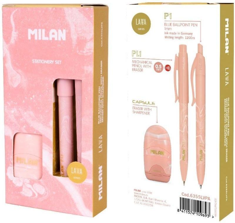 Zestaw prezentowy Lava różowy MILAN MILAN ✅ ✔️ Zestaw do pisania z serii Lava, która jest inspirowana erupcjami wulkanów i ruchem stopionej skały, idealny na prezent. Zestaw zawiera: długopis P1 z niebieskim tuszem, ołówek automatyczny z grafitem HB 0,5 mm, który tworzy cienką linię i jest średnio twardy i posiada na końcu wykręcaną długą gumkę do wymazywania oraz temperówko-gumkę CAPSULE na cienkie kredki i ołówki z pojemnikiem na ścinki i bezpiecznym ostrzem. Wszystko to oryginalne produkty stworzone przez własny dział badawczo - rozwojowy MILAN. Rozmiar opakowania: 14,5 x 7,3 x 2,5 cm. Rozmiar długopisu: 14,1 x 1,7 cm. O 1 cm. Rozmiar ołówka: 14,4 x 1,5 x 1,1 cm. Rozmiar temperówko-gumki: 6.5 x 3.5 x 2.4 cm. Dostępne zapasowe gumki do temperówki i ołówka. Kolor różowy. ➡️ Wydawnictwo/Producent: MILAN Rok wydania: pudełko, Dodatkowe informacje. Zestaw prezentowy Lava różowy MILAN ✅ MILAN ✅ Numer: 8411574109693, ATE-683984. ✅ Ilośc dzni do wysyłki:3. ✅ Waga: W opisie kg. ul> ➡️ Artykuły szkolne i papiernicze / Długopisy ➡️ Zestaw prezentowy Lava różowy MILAN to gwarancja doskonałej jakości i niezawodności, zaprojektowana z myślą o najbardziej wymagających użytkownikach. ➡️ Innowacyjne technologie i perfekcyjne wykonanie sprawiają, że produkt wyznacza nowe standardy na rynku. ➡️ Każdy element został starannie dopracowany, aby zapewnić maksymalną wygodę, trwałość i satysfakcję z użytkowania. ➡️ Wybierając Zestaw prezentowy Lava różowy MILAN, inwestujesz w produkt, który spełni najwyższe oczekiwania i sprawdzi się w każdej sytuacji.