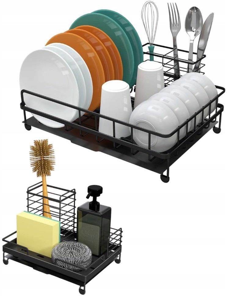 Ociekacz Do Naczyń Sztućce Organizer 2szt Czarny Produkt fabrycznie nowy, nieużywany w oryginalnym opakowaniu. Półki na naczynia na blat kuchenny Nierdzewna suszarka do naczyń kuchennych z ociekaczem, Zestaw ociekaczy do małych naczyń 2 w 1 z uchwytem na gąbkę, Ociekacze do naczyń oszczędzające …