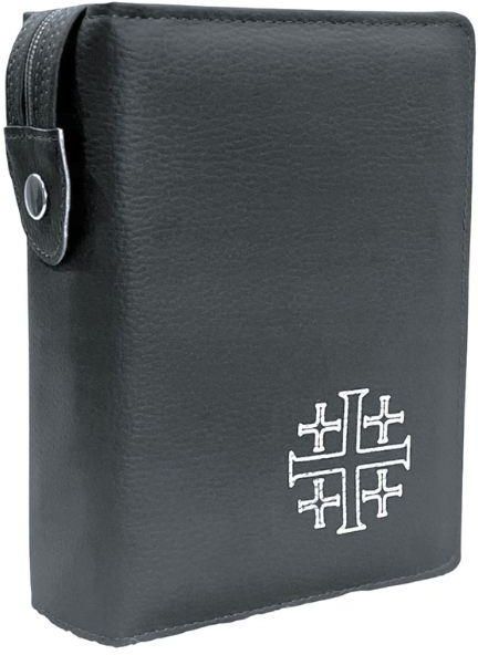 Ekskluzywne etui na Biblię Jerozolimską – w kolorze szarym ze srebrnym zdobieniem Poszukujesz eleganckiego etui, które nie tylko ochroni twoją Biblię Jerozolimską, ale także podkreśli jej wyjątkowy charakter? Oto wysokiej klasy etui na Biblię Jerozolimską w dużym formacie, które łączy funkcjonalność z wyrafinowanym stylem. Etui w szarym kolorze to doskonały prezent na chrzciny, bierzmowanie, jubileusz czy każdą inną okazję. Jego elegancki, ale prosty design z pewnością przypadnie do gustu każdemu odbiorcy. Na froncie widnieje subtelny, srebrny krzyż jerozolimski, który nadaje okładce wyjątkowy, a zarazem uniwersalny wygląd. Ochrona i funkcjonalność Trwałe materiały: Wysoka jakość wykonania zapewnia ochronę przed zabrudzeniami, uszkodzeniami i zużyciem podczas codziennego użytkowania. Idealne dopasowanie: Etui stworzone z myślą o małym formacie Biblii Jerozolimskiej (13,5 x 18,5 cm), co gwarantuje wygodne i bezpieczne przechowywanie. Zapięcie na suwak: Solidny suwak chroni zawartość i ułatwia dostęp do Biblii w każdej chwili.