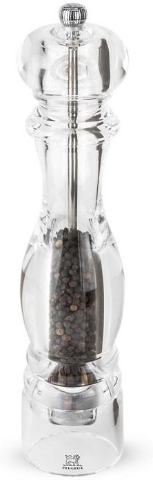 PEUGEOT to jedna z najbardziej rozpoznawalnych marek pochodzących z Francji produkty tej marki stanowią klasyczną ozdobę eleganckich stołów i są nieodzownym elementem warsztatu renomowanych kucharzy. ► Młynek do pieprzu Nancy, 30cm, arkyl, tradycyjny Młynki marki PEUGEOT są niezmiennie obecne w kuchniach na całym globie przez niemal dwie dekady, stając się ikoną francuskiej kuchni. Większość etapów produkcji odbywa się w fabryce PEUGEOT w Quingey, która mieści się w departamencie Doubs, w malowniczej Burgundii. Dzięki pełnej kontroli nad procesem wytwarzania, mechanizmy mielące młynków są objęte dożywotnią gwarancją.W młynkach Peugeot zastosowano autorskie mechanizmy mielące, dedykowane różnorodnym rodzajom przypraw. Młynki do soli świetnie sprawdzają się przy mieleniu soli gruboziarnistej, morskiej oraz kamiennej, utrzymując granulację na poziomie do 4 mm. Z kolei młynki do pieprzu zostały wyposażone w specjalny mechanizm o spiralnym kształcie żaren, co gwarantuje optymalne wprowadzanie ziaren oraz ich efektywne mielenie.Regulacja grubości mielenia w młynkach PEUGEOT może odbywać się tradycyjnie, poprzez płynną regulację, bądź też, w przypadku młynków z mechanizmem uSelect, poprzez wybór jednego z sześciu stopni grubości mielenia.Firma Peugeot kieruje swoją troskę w stronę proekologicznej polityki, co przekłada się na używanie drewna pochodzącego z certyfikowanych źródeł PEFC do produkcji młynków. Przeważająca część tego drewna pochodzi z lokalnych lasów regionu Franche-Comte. Co więcej, korpusy młynków są malowane wyłącznie farbami bezrozpuszczalnikowymi. ► Cechy produktu: - Materiał: Wykonany z akrylu i stali nierdzewnej, ten młynek łączy trwałość i elegancję.- Stalowy Mechanizm Mielący: Mechanizm mielący w tym młynku objęty jest dożywotnią gwarancją, co gwarantuje niezawodne i długotrwałe działanie.- Mechanizm o Spiralnym Kształcie Żaren: Dzięki mechanizmowi o spiralnym kształcie żaren zapewnione jest optymalne mielenie przypraw.- Przeznaczony do Mielenia Różnych Pieprzy: Ten młynek nadaje się idealnie do mielenia pieprzu czarnego, białego, zielonego i czerwonego o maksymalnej średnicy 6 mm.- Dla Miłośników Pieprzu Różowego: Warto zaznaczyć, że możliwe jest stosowanie pieprzu różowego, jednak tylko w przypadku, gdy jego zawartość w mieszance nie przekracza 15% ogółu.- Przechowywanie: Aby zachować jakość, młynek należy przechowywać w suchym miejscu z dala od źródeł wilgoci i ciepła.- Zawiera Przyprawę: Ten młynek jest dostarczany z przyprawą, gotowy do użycia.  ► O marce Peugeot: PEUGEOT to jedna z najbardziej rozpoznawalnych marek pochodzących z Francji, silnie zakorzeniona w bogatej historii kraju. Młynki marki Peugeot stanowią klasyczną ozdobę eleganckich stołów i są nieodzownym elementem warsztatu renomowanych kucharzy.Historia tej wyjątkowej marki rozpoczęła się w XIX wieku. Ostrza, młynki do kawy, rowery, samochody, młynki stołowe... Dzięki inżynieryjnej pomysłowości Peugeot zawsze stał na czele innowacji!Peugeot jestniekwestionowanym liderem w produkcji młynków do przypraw i kawy. Ciągle doskonali ich konstrukcję, tworząc narzędzia do kreowania smaków, dostarczając przyjemności i nowych doznań dla wyrafinowanego podniebienia koneserów.