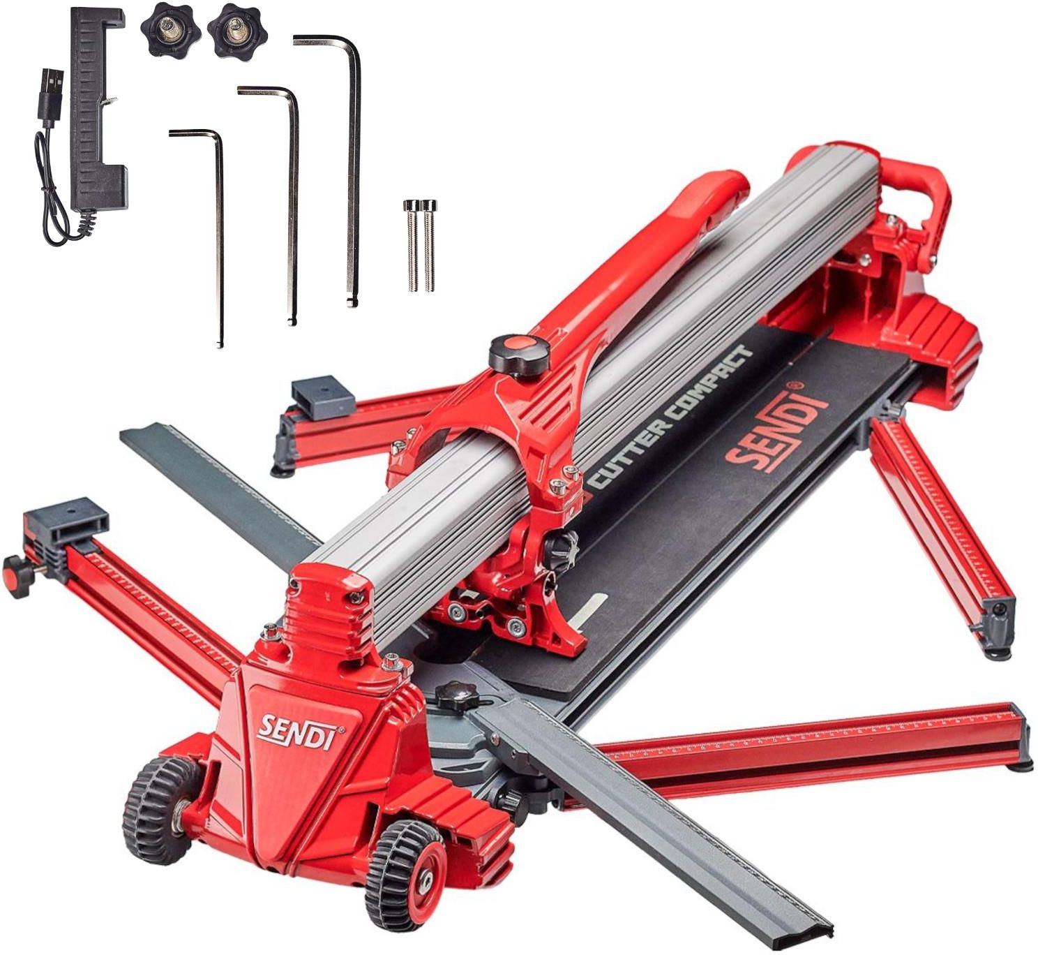 Opis przecinarki ręcznej do płytek Sendi Przecinarka ręczna SENDI PRO CUTTER ULTRA, to solidna i profesjonalna maszynka do płytek, idealna do precyzyjnego cięcia płytek ceramicznych, gresu czy kamienia naturalnego o długości do 650 mm i maksymalnej grubości do 15 mm. Wytrzymała konstrukcja maszynki gwarantuje stabilność, dzięki sztywnym blatom i bocznym podporom. Płynny posuw na łożyskach kulkowych oraz laserowa linia cięcia zwiększa precyzję. Mocny i szeroki łamak o dużej sile nacisku 900 kg z mocowaniem magnetycznym, umożliwia łamanie płytki na jej końcu i początku. Wyposażona w kółka i wysuwany uchwyt zapewnia łatwość transportu i mobilność. Dodatkowe informacje Konstrukcja szyny składa się z dwóch głównych elementów: aluminiowego profilu, który służy jako usztywnienie oraz podstawa do prowadnicy wywodzącej się bezpośrednio z obrabiarek CNC, co zapewnia wytrzymałość i precyzję cięcia Płynny i lekki posuw na łożyskach kulkowych ułatwia cięcie Sztywne blaty i 4 boczne składane podpórki o długości 65 cm, zwiększają stabilność podczas pracy Przymiar czołowy z regulacją kąta Mocny łamak z mocowaniem magnetycznym, umożliwia łatwe i szybkie łamanie płytki Zielony laser pomaga precyzyjnie wyznaczać miejsce cięcia Kółka z wysuwanym uchwytem ułatwiają przemieszczanie maszynki na budowie Dane techniczne Długość cięcia: 650mm Max. grubość cięcia: 6-15mm Kółko tnące łożyskowane: 22 x 6 x 6mm Podpory boczne: 4 x 65 cm(składane) + przymiar czołowy Laser: Zielony Wymiary: 1200 x 320 x 270mm Waga netto: 12,5 kg / 14,8 kg W dostawie Przecinarka ręczna do płytek glazury SENDI PRO CUTTER 65 4 x Składana podpora boczna 1 x Przymiar czołowy z regulacją kąta 1 x Zestaw kluczy 1 x Ładowarka USB do lasera 1 x Akumulator typu 18650 o pojemności 2000 mAh