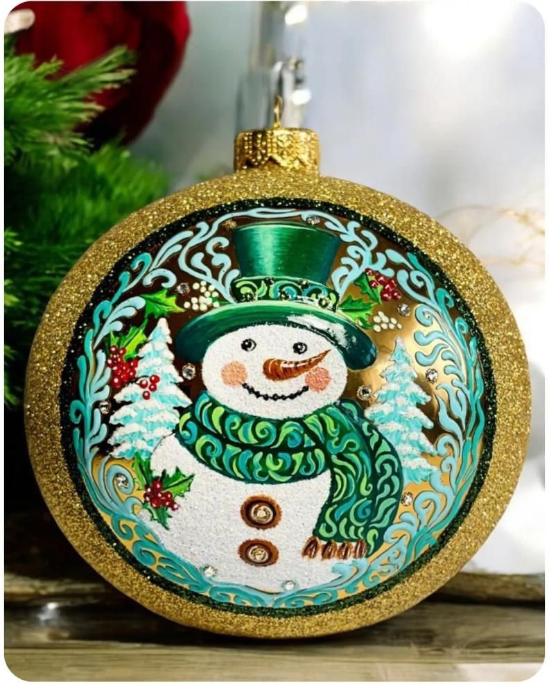 Ręcznie Malowane Bombka Malowana Duża Choinkowa W Pudełku Bałwanek Alwernia