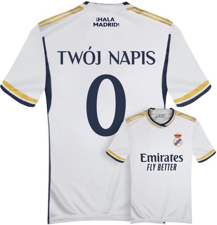 Produkt z WŁASNYM NAPISEM. Twój NAPIS i Twój NUMER! Zamów dowolny nadruk: KUBA 7, PAWEŁ 8, OLIWIER 11, LEWANDOWSKI 9, MILIK 7, ITP. Po dokonaniu zakupu prosimy podać TREŚĆ NADRUKU jaki ma zostać umieszczony na plecach (imię, nazwisko, pseudonim - maksymalnie 14 liter) oraz numer (maksymalnie 2 cyfry). Prosimy pamiętać, że produkty z nadrukami na plecach nie podlegają wymianie oraz zwrotowi. Pamiętaj, że od momentu gdy Twoje zamówienie zmieni status na: W REALIZACJI nie będzie już możliwości zmiany treści podanego przez Ciebie napisu lub zmiany wybranego rozmiaru. TWÓJ NAPIS - Koszulka piłkarska Real Madryt MBAPPE BELLINGHAM RONALDO 122 Uwaga! Wszystkie produkty oznaczone marką BOMASPORT (koszulki, spodenki, skarpety) szyjemy tylko i wyłącznie w Polsce. Prosimy uważać na oferty chińskich sprzedawców, którzy nielegalnie korzystają ze zdjęć naszej własności. WYKAZ CECH: Koszulka wykonana w 100% z wytrzymałego poliestru Przedmiot jest nowy, oryginalnie zapakowany w opakowanie foliowe Materiał szybkoschnący, oddychający i przyjemny w dotyku Wzór wykonany metodą sublimacji, kolory są żywe, a całość niemożliwa do sprania oraz odporna na czynniki zewnętrzne Znaki klubowe są nieoryginalne, opracowane w taki sposób by nie naruszać praw autorskich ROZMIAR Tabelę rozmiarów znajdziesz obok wariantów rozmiaru w zakładce TABELA ROZMIARÓW. ----------------------------------------------------------------------- CZAS DOSTAWY W ofertach sklepu BOMASPORT widnieje informacja: "Przewidywany czas dostawy wyliczany na podstawie wcześniejszych dostaw tego sprzedającego". Generowany jest on przez system Allegro, a nie przez pracowników naszej firmy. Nie jest to gwarancja dostawy na dany dzień. Czas dostawy może różnić się w zależności od wybranej formy dostawy (wybranego przewoźnika). Wszystko zależne jest od okresu, w którym składane zostaje zamówienie, mamy tutaj na myśli Dzień Dziecka, Święta Bożego Narodzenia, Święta Wielkanocne, Mikołajki i tym podobne. Najszybciej realizowane na terenie Polski są zamówienia z opcją dostawy za pośrednictwem: Inpost Paczkomaty. Zamówienia indywidualne takie jak na przykład "Twój nadruk, Twój napis", personalizowane są pod Klienta stąd wydłużony czas dostawy. Przybliżone wymiary (tolerancja +/- 1-2 cm w zależności od partii produkcyjnej): 110 - wiek dziecka (lata) 5, długość koszulki 44, obwód pod pachami 68, długość spodenek 29 116 - wiek dziecka (lata) 6, długość koszulki 45, obwód pod pachami 70, długość spodenek 30 122 - wiek dziecka (lata) 7, długość koszulki 48, obwód pod pachami 72, długość spodenek 32 128 - wiek dziecka (lata) 8, długość koszulki 49, obwód pod pachami 74, długość spodenek 34 134 - wiek dziecka (lata) 9, długość koszulki 52, obwód pod pachami 78, długość spodenek 35 140 - wiek dziecka (lata) 10, długość koszulki 56, obwód pod pachami 82, długość spodenek 36 146 - wiek dziecka (lata) 11, długość koszulki 58, obwód pod pachami 86, długość spodenek 38 152 - wiek dziecka (lata) 12, długość koszulki 61, obwód pod pachami 90, długość spodenek 40 158 - wiek dziecka (lata) 13, długość koszulki 62, obwód pod pachami 94, długość spodenek 42 * jeżeli skorzystano z oferty na zakup samej koszulki to długość spodenek Ciebie nie dotyczy :-)