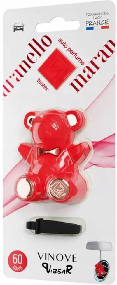 VINOVE VIBEAR To idealny produkt zarówno dla młodych jak i tych dojrzalszych Klientów, którzy inspirują się współczesnym designem, ale nie traktują go zbyt poważnie. Koncepcja została zainspirowana wspomnieniami z dzieciństwa i ulubionymi zabawkami - stąd postać misia, która wydała się być najlepszym wyborem. Pomysł na stworzenie VIBEAR zaczerpnięto również od współczesnego artysty Jeffa Koonsa związanego ze sztuką pop, którego dzieła często inspirowane są obrazami komercyjnymi i zabawkami. Nowoczesny design idealnie wpasowuje się we wnętrze samochodu Dzięki szczelinie między tyłem a przodem oraz perforacją z tyłu zapach jest rozprowadzany równomiernie szeroka gama kolorów i zapachów podwójny system montażu - do powieszenia i w kratkę nawiewu sprawdzona technologia polimer stosowany z powodzeniem od lat, który stopniowo uwalnia zapach nawet do 60 dni MARANELLO Zapach przepełniony energią, emocjami i tajemnicą. Przywodzi na myśl wspomnienia bezsennych nocy, szaleńczych wypraw, niekończących się podróży. Łączy w sobie dojrzałość wanilii, subtelność delikatnych kwiatów jaśminu oraz energię pomarańczy Ten zapach jest kobietą. Nuta głowy: pieprz, mandarynka, gruszka Nuta serca: kwiat pomarańczy, jaśmin Nuta bazowa: kawa, wanilia VINOVE VIBEAR MARANELLO Bezpieczeństwo dla kokpitu i tapicerki. Perfumy samochodowe VINOVE ujęte są w całkowicie bezpiecznym dla wnętrza samochodu trwałym polimerze, stanowiącym wraz z obudową kondensator zapachu. Testy wykazały pełną odporność tych perfum na wysokie i niskie temperatury. Żaden z komponentów użytych w perfumach VINOVE nie wchodzi w szkodliwe reakcje z materiałami używanymi we wnętrzach aut. Kondensator zapachu VINOVE ma postać stałą, dzięki czemu nie wydostanie się z niego żadna substancja – wyłącznie wyjątkowy zapach. Zalety WŁOSKI DESIGN : Szlachetna forma perfum samochodowych VINOVE idealnie wpisuje się w stylistykę współczesnych aut. UNIKALNOŚĆ ZAPACHU : Francuski rodowód receptur perfum VINOVE zapewnia wyszukane połączenia nut zapachowych. Twój samochód zyska dodatkowy wymiar elegancji. TRWAŁOŚĆ ZAPACHU : Perfumy samochodowe VINOVE pachną aż do 60 dni. Dyskretny zapach uwalnia się powoli dzięki skoncentrowanym esencjom zapachowym i zaawansowanym technologicznie polimerom, użytym jako nośnik zapachu. VINOVE Sp. z o.o. jest polską firmą, która funkcjonuje od 2016 r. VINOVE to ekskluzywne perfumy samochodowe. Do produkcji perfum samochodowych VINOVE zastosowano technologię XXI wieku. Wykorzystano wiedzę, otwartość i doświadczenie zespołu naukowców i wspólnie z nimi skondensowano zapachy w nowatorskim polimerze. Ich kształt jest tak skonstruowany, by powietrze z wywietrzników samochodowych delikatnie opływało polimerowy labirynt, uwalniając zapach subtelnie i długotrwale – aż do 90 dni. Projektując nośnik zapachu wzięto pod uwagę przede wszystkim jego walory użytkowe: długotrwałość uwalniania zapachu, bezpieczeństwo dla tapicerki i kokpitu samochodu, a także ekskluzywny wygląd, współgrający ze stylistyką nowoczesnych aut. Do produkcji perfum VINOVE użyto materiałów najwyższej jakości.