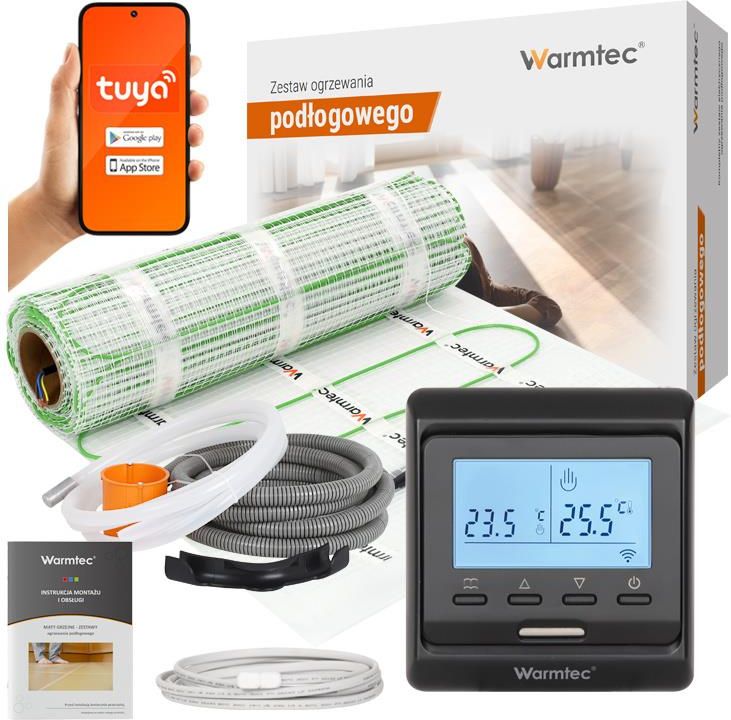 Warmtec Zestaw Ogrzewania Podłogowego Pod Płytki DSE-100/T520 Czarny 10m 2100W/m2 Wi-Fi Alwernia