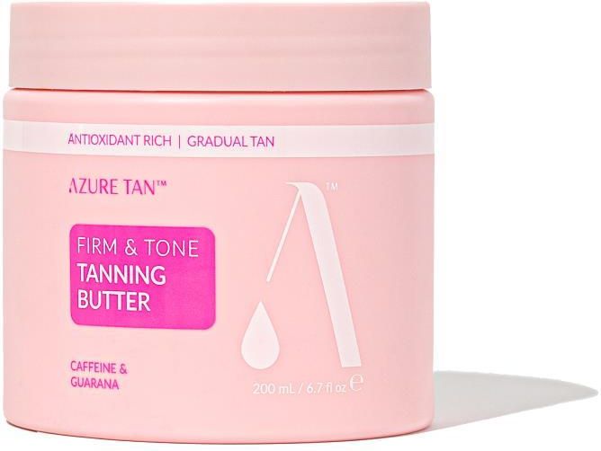 Azure Tan Firm & Tone - stopniowo opalające masło do ciała, 200 ml Stopniowo opalające masło do ciała Azure Tan Firm & Tone zapewni Twojej skórze energetyzujący kofeinowy lifting i promienną, zdrową opaleniznę. Szybko się wchłania,dogłębnie nawilża, a jego brzoskwiniowy zapach zachwyca …
