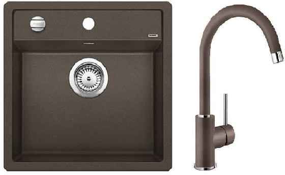 BLANCO SET DALAGO 5 + bateria kuchenna MIDA, kawowy BLANCO DALAGO 5 Silgranit® zlewozmywak kawowy z korkiem automatycznym 517165 Prosty kształt - maksymalna pojemność. Wymiary zewnętrzne: 505 x 500 mm Wycięcie w blacie: 495 x 490 mm Wymiary komór: 445 x 350 x 190 mm Typ : 1-komorowy Minimalna podbudowa: 50 cm Materiał: SILGRANIT® PuraDur® II Zlewozmywak wpuszczany w blat. Model dostępny również w wersji na równi z blatem. Cena obejmuje: - zawór 3,5 cala z sitkiem - zlew posiada kompletny syfon i odpływy - korek automatyczny BLANCO MIDA bateria kuchenna kawowa 519423 Elastyczne przewody przyłączeniowe o długości 350 mm i nakrętka 3/8"; gwarantują szybki i pewny montaż. Opatentowany regulator strumienia redukuje osadzanie się kamienia na główce baterii. Wyposażona w uszczelki ceramiczne. Płyta usztywniająca zwiększa stabilność baterii przy montażu ze zlewozmywakami stalowymi. Wysoka wylewka ułatwia napełnianie garnków i wazonów Typ: jednouchwytowa-mieszakowa/wysokociśnieniowa Wykonanie korpusu: kawa (wygląd Silgranitu) Wysokość: 327 mm Obrót wylewki: 360° Średnica otworu montażowego: 35 mm Woda jest najważniejszym produktem spożywczym. Należy o tym pamiętać przy zakupie baterii kuchennej. Tylko wysokiej jakości materiały i certyfikowane produkty zapewniają maksymalne bezpieczeństwo użytkowania i ochronę Państwa zdrowia. Baterie BLANCO urzekają wspaniałym wykonaniem, najwyższej jakości materiałami i fascynującym wzornictwem. Już od 1925 roku BLANCO produkuje wysokiej jakości wyposażenie kuchenne.BLANCO - jeszcze większy komfort w Państwa kuchni. Urzekają wspaniałym wykonaniem, najwyższej jakości materiałami i fascynującym wzornictwem. Już od 1925 roku BLANCO produkuje wysokiej jakości wyposażenie kuchenne. Zlewozmywaki BLANCO z kompozytu SILGRANIT urzekają eleganckimi, pięknymi kolorami i atrakcyjnym wzornictwem. Silgranit składa się w 80% z naturalnego granitu. Granit w połączeniu z akrylem, ceramiką i kolorowym pigmentem uzyskuje swoje niezrównane właściwości. Kamienno-jedwabista, jednolita powierzchnia jest niezwykle przyjemna w dotyku. Dzięki doskonałym właściwościom materiału SILGRANIT jest wytrzymały i łatwy w utrzymaniu czystości. Zalety kompozytu SILGRANIT: - wyjątkowa łatwość pielęgnacji - duża wytrzymałość - przypominający w dotyku kamień - niespotykana odporność na zarysowania - wysoka wytrzymałość na pęknięcia - odporność na wysokie temperatury do 280 °C -100% neutralność w kontakcie z żywnością - 100 % odporność na kwasy występujące w gospodarstwie domowym - 100 % odporność na światło słoneczne Szeroka paleta barw zlewozmywaków o jednakowej strukturze we wszystkich kolorach zapewnia idealne dopasowanie baterii BLANCO do zlewozmywaka.