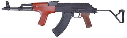 Replika karabinka RK-15Replika RK-15 wykonana została ze stali, aluminium i wysokiej jakości drewna litego, z ogromną dbałością o szczegóły. Elementy takie jak korpus, składana kolba, magazynek, atrapa rury gazowej, reduktor odrzutu, pokrywa zamka oraz drobne elementy wykonane zostały ze stali, natomiast lufa zewnętrzna wykonana jest z aluminium. Chwyt przedni z wyprofilowaną rączką oraz nakładką na atrapę rury gazowej zostały wykonane z wysokiej jakości, ciemnego drewna litego , które świetnie się prezentuje i wygodnie leży w dłoni. Chwyt pistoletowy został wykonany z wytrzymałego tworzywa sztucznego. RK-15 zaopatrzona jest w komorę hop-up z tworzywa sztucznego, która charakteryzuje się bardzo dobrą szczelnością. Zastosowano w niej również standardowy dla replik AK, bardzo wytrzymały gearbox V.3. Zastosowanie tu sprężyny M125 w połączeniu z zaopatrzonym w aluminiową tuleję tłokiem dało w efekcie znaczną jak na replikę szturmową prędkość wylotową rzędu ~380 FPS. Wpływ na ten fakt ma również użycie w konstrukcji wzmocnionej prowadnicy sprężyny z łożyskowaniem. Ze względu na swe rozmiary, replika nadaje się świetnie do starć na średnim dystansie, zaś długa lufa wewnętrzna w połączeniu ze sporą prędkością wylotową zapewniają znaczne skupienie i precyzję strzału przy wymianie ognia. Zestaw nie zawiera akumulatora ani ładowarki. W skład zestawu wchodzi: - replika - magazynek