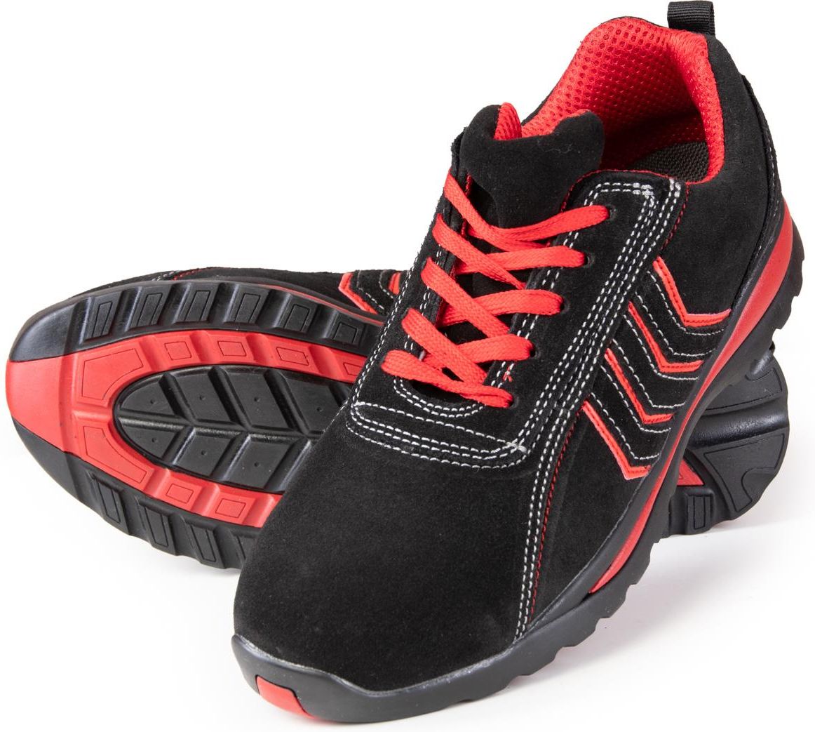 Obuwie robocze bez podnoska Fusion O1 Fusion O1 wykonane są z mocnej zamszowej skóry o grubości 1,6-1,8mm. Wewnątrz buta znajduje się nowoczesna higroskopijna wyściółka zapobiegająca otarciom oraz wchłaniająca pot. Obuwie nie posiadają podnoska. Mocna gumowa podeszwa posiada właściwości antyelektrostatyczne, antypoślizgowe (SRA) oraz absorbuje energię pięty. Jest odporna na węglowodory oraz oleje. Kolorystyka wierzchniej części obuwia jest czarno-czerwona, podeszwa również w takim kolorze. Dostępne rozmiary od 39 do 47. Aukcja dotyczy butów w rozmiarze 37 Cechy produktu: Sznurowane czarno - czerwone półbuty szyte biało – czerwonymi nićmi Wykonane z mocnej zamszowej skóry o grubości 1,6-1,8mm W środku buta znajduje się nowoczesna higroskopijna wyściółka zapobiegająca otarciom oraz wchłaniająca pot Mocna gumowa podeszwa posiada właściwości antyelektrostatyczne, antypoślizgowe (SRA) oraz absorbuje energię pięty. Jest odporna na węglowodory oraz oleje. Wymienna wkładka Gruby, ale jednocześnie miękki miechowy język buta zapewnia duży komfort użytkowania Buty posiadają elementy odblaskowe zapewniające dobrą widzialność po zmroku Produkt zgodny z normą EN ISO 20345
