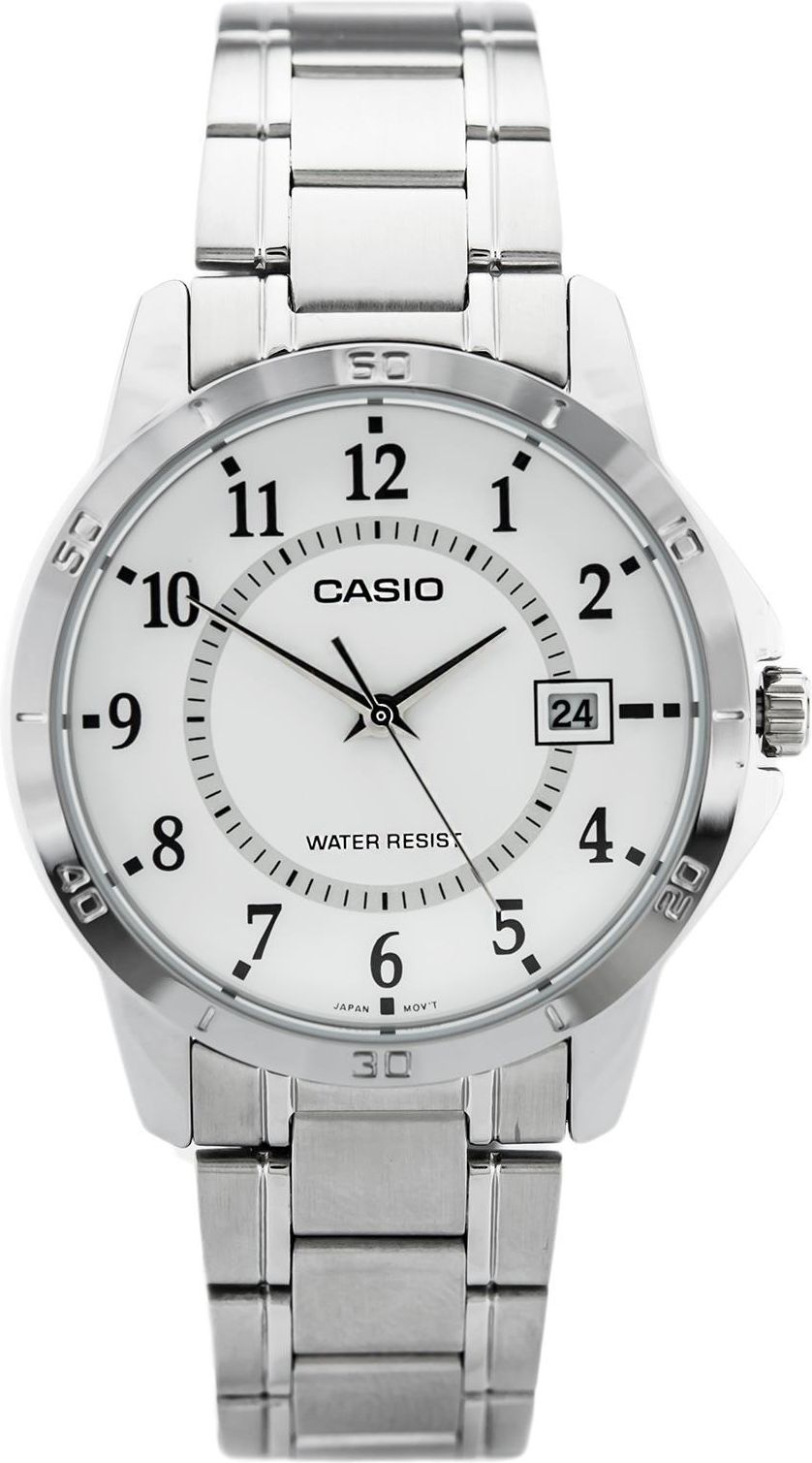 ZEGAREK MĘSKI CASIO MTP-V004D 7B (zd047b) + BOX +GRAWER Zegarek męski Marka: Casio Przedmiot z oficjalnej - - polskiej dystrybucji DANE TECHNICZNE FUNKCJE: datownik - dzień miesiąca WYMIARY: koperta: 42 x 47 x 8,3 mm średnica tarczy: 33 mm szerokość bransolety: 18/20 mm maksymalny obwód około 21 cm KOLORYSTYKA: tarcza w kolorze białym koperta w kolorze srebrnym bransoleta w kolorze srebrnym INFORMACJE O ZEGARKU • Mechanizm: Japoński, niezawodny, kwarcowy mechanizm MIYOTA, wyposażony w baterię. • Szkiełko: Mineralne, odporne na zarysowania. • Koperta i tarcza: Koperta zegarka wykonana z wysokiej jakości stali nierdzewnej. Harmonijnie zaaranżowany, czytelny cyferblat. • Wodoszczelność: Zegarek jest wodoszczelny w klasie 3ATM. • Pasek/bransoleta: Zarówno paski jak i bransoletki w naszych zegarkach są uniwersalne, można je dowolnie skracać przez to pasują na każdy rozmiar. • Technologia IPS/IPG: Jonowa metoda napylania powłoki zegarka, zapewniająca jednolitą, gładką powierzchnię oraz podwyższoną odporność na ścieranie. Ponadto zegarek nie zawiera niklu, dzięki temu jest antyalergiczny. GALERIA PRODUKTU: W ZESTAWIE PUDEŁKO DO ZEGARKA GRAWEROWANIE ZEGARKA GRATIS ! Dołącz grawerowaną dedykację na dekielku zegarka. Nalepiej wpisać treść graweru w wiadomości dla sprzedającego. Przydatne informacje dotyczące grawerowania: Grawer wykonywany jest z precyzją i dokładnością o każdy detal. Dedykacja umieszczana jest na tylnej części zegarka - na dekielku - jest to najbardziej odpowiednie miejsce. Zegarek z grawerem to idealny pomysł na prezent. Maszyna do grawerowania znajduje się u nas w biurze - na miejscu. Co może znajdować się na grawerze i jak może wyglądać? Oprócz tekstu istnieje możliwość grawerowania grafik, co z pewnością wzmocni efekt dedykacji. Jesteśmy w stanie wygrawerować dla Państwa każdą grafikę. Najczęściej wybierane grafiki to: serce kwiat róży znak nieskończoności herb ulubionego klubu grafika odzwierciedlająca hobby/zainteresowania typu motocykl, piłka nożna, aparat fotograficzny. Poniżej przedstawiamy przykłady tego typu grafik: Kilka przykładowych grawerów: