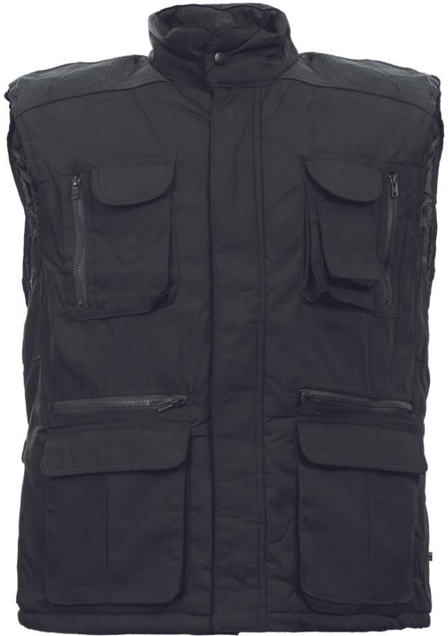 Materiał: materiał podszewki: 80 % poliester, 20 % bawełna, 160 g/m² wewnętrzna podszewka odzieży: 100 % poliester wewnętrzna izolacja odzieży: 100 % poliester, 200 g/m² opis: • ocieplana kamizelka • wysoki kołnierz dobrze chroni szyję • możliwość regulacji obwodu kamizelki za pomocą zatrzasków • u dołu elastyczny sznurek • dostosowana do haftu maszynowego normy: en iso 13688 cechy: cechy: duże rozmiary