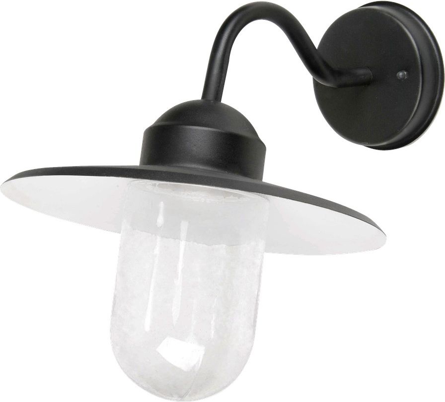 Latarnia ścienna do użytku na zewnątrz pomieszczeń. Z klasyczną oprawą oraz kloszem ze szkła. Wkręty montażowe w zestawie. Żarówka do kupienia osobno.