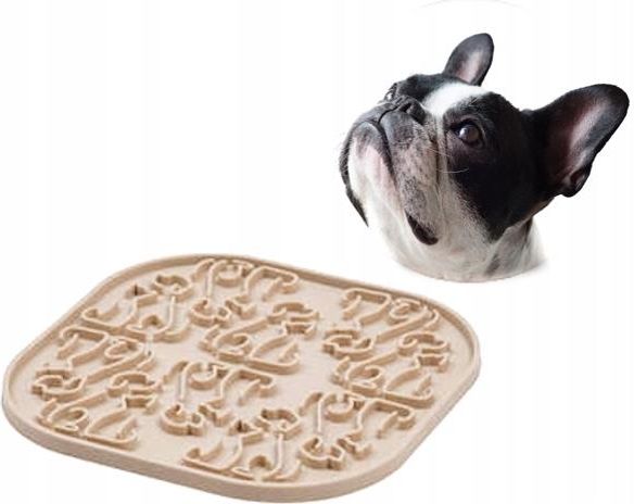 Dolina Noteci relaksująca mata tacka do lizania Dolina Noteci LOLLIPOP antystresowa mata do lizania. relaksuje odstresowuje spowalnia jedzenie Mata do lizania to idealne rozwiązanie podczas karmienia Twojego psa. Spowolni jedzenie, jeśli pupil spożywa karmę za szybko, zaś jeśli jest smakoszem, który uwielbia delektować się posiłkiem, to mata z pewnością go uatrakcyjni. Wykonana jest z miękkiego tworzywa, które stabilnie trzyma się podłoża, więc przy jedzeniu nie będzie się przesuwać. Wyższy zewnętrzny bok maty chroni posiłek przed wypadaniem poza nią. Idealnie sprawdzi się do zabawy w lizanie i pobieranie pokarmu ze specjalnie zaprojektowanych wypustek, które masują język czworonoga, dostarczając mu dodatkowych wrażeń sensorycznych. Taki sposób podania karmy działa na psa uspokajająco i relaksująco. Mata dostępna jest w trzech kolorach: beżowym, jasnoszarym i czarnym. Wymiar produktu:185x185x6 mm W tej ofercie kupujesz matę beżową.