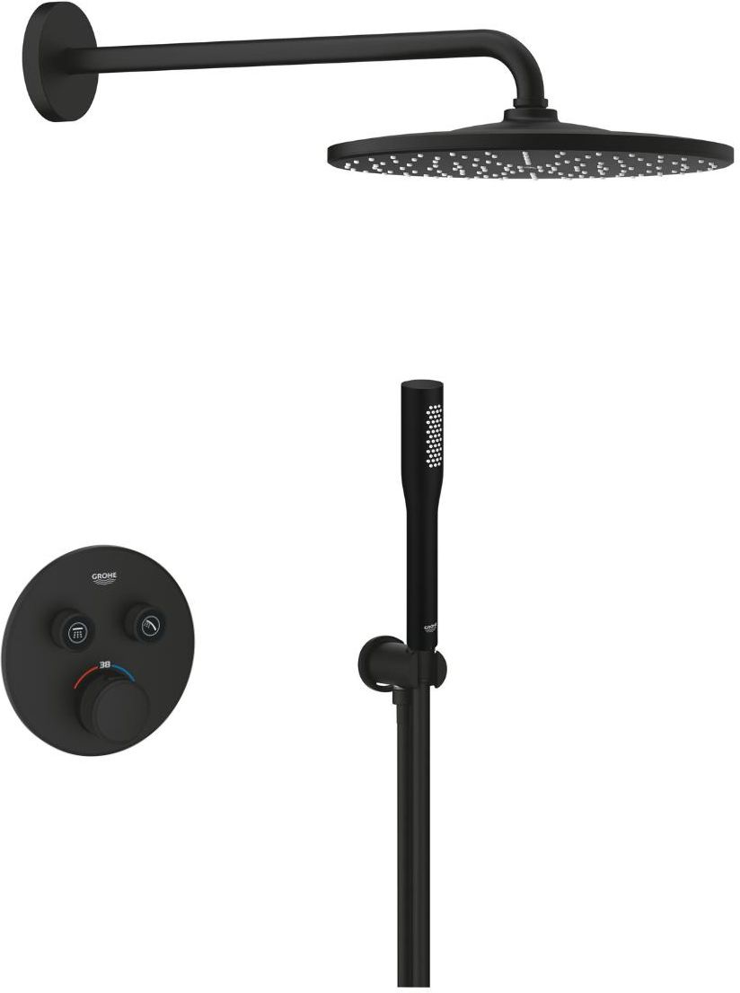 Zestaw Prysznicowy Podtynkowy 18.1 SmartBox Phantom Black Grohe W skład zestawu wchodzi: 29507KF0 GROHTHERM SMARTCONTROL bateria prysznicowa podtynkowa, termostatyczna, do obsługi 2 wyjść wody 22121KF0 RAINSHOWER MONO 310 deszczownica z ramieniem 422 mm, 1 strumień 22126KF0 EUPHORIA COSMOPOLITAN …