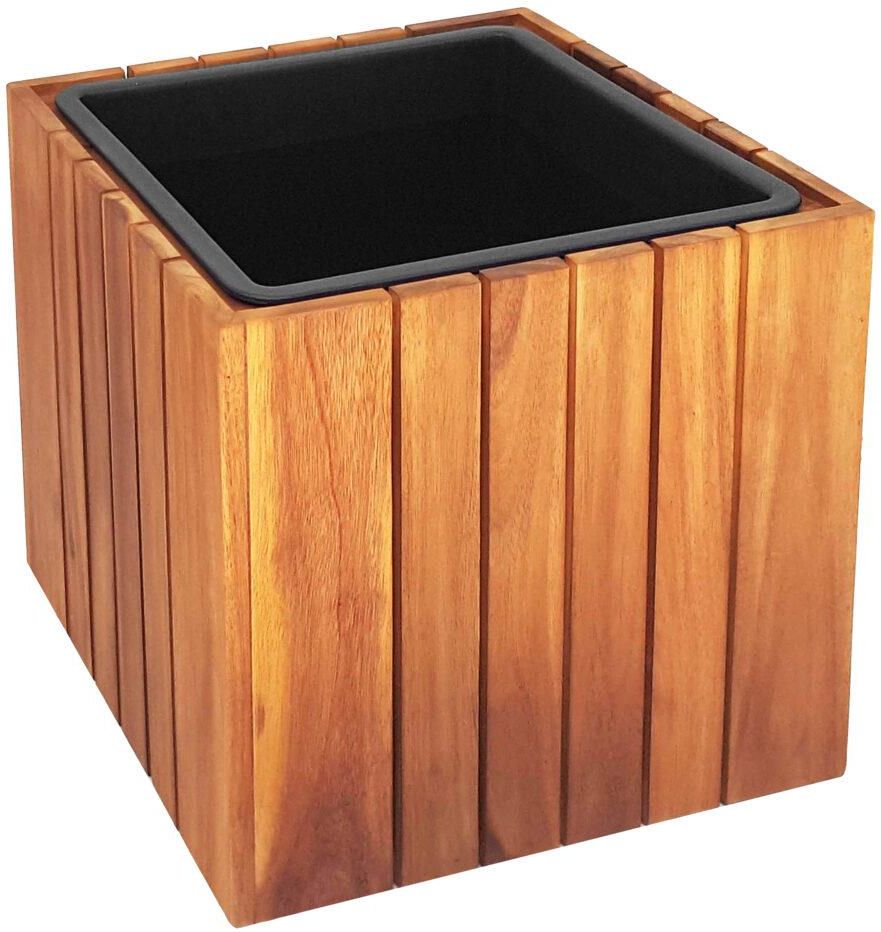 Hard Head skrzynka na kwiaty 32x32cm Skrzynka na kwiaty z drewna akacjowego Sześcienna skrzynka na kwiaty  to stylowa alternatywa dla standardowej doniczki. Drewno akacjowe nada tarasowi lub balkonowi stylowy, ciepły wygląd. Wyjmowana donica z tworzywa – łatwa pielęgnacja Skrzynka na kwiaty ma wyjmowaną donicę z tworzywa z otworami do odprowadzania wody, co ułatwia zarówno sadzenie roślin, jak i pielęgnację.